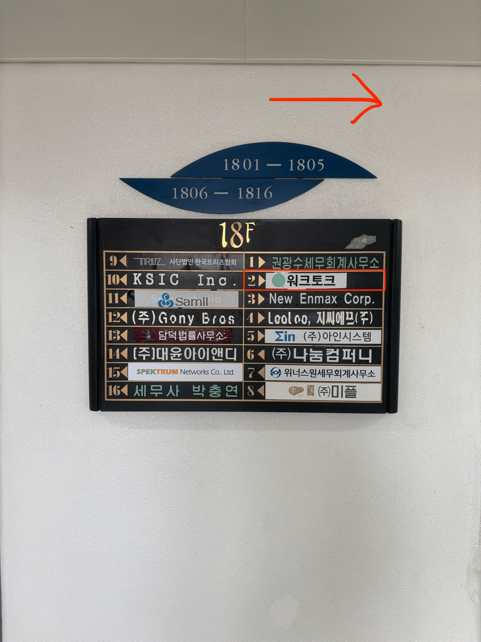 4. Once at 18th floor, turn right to find Room number 1802 along the path.
