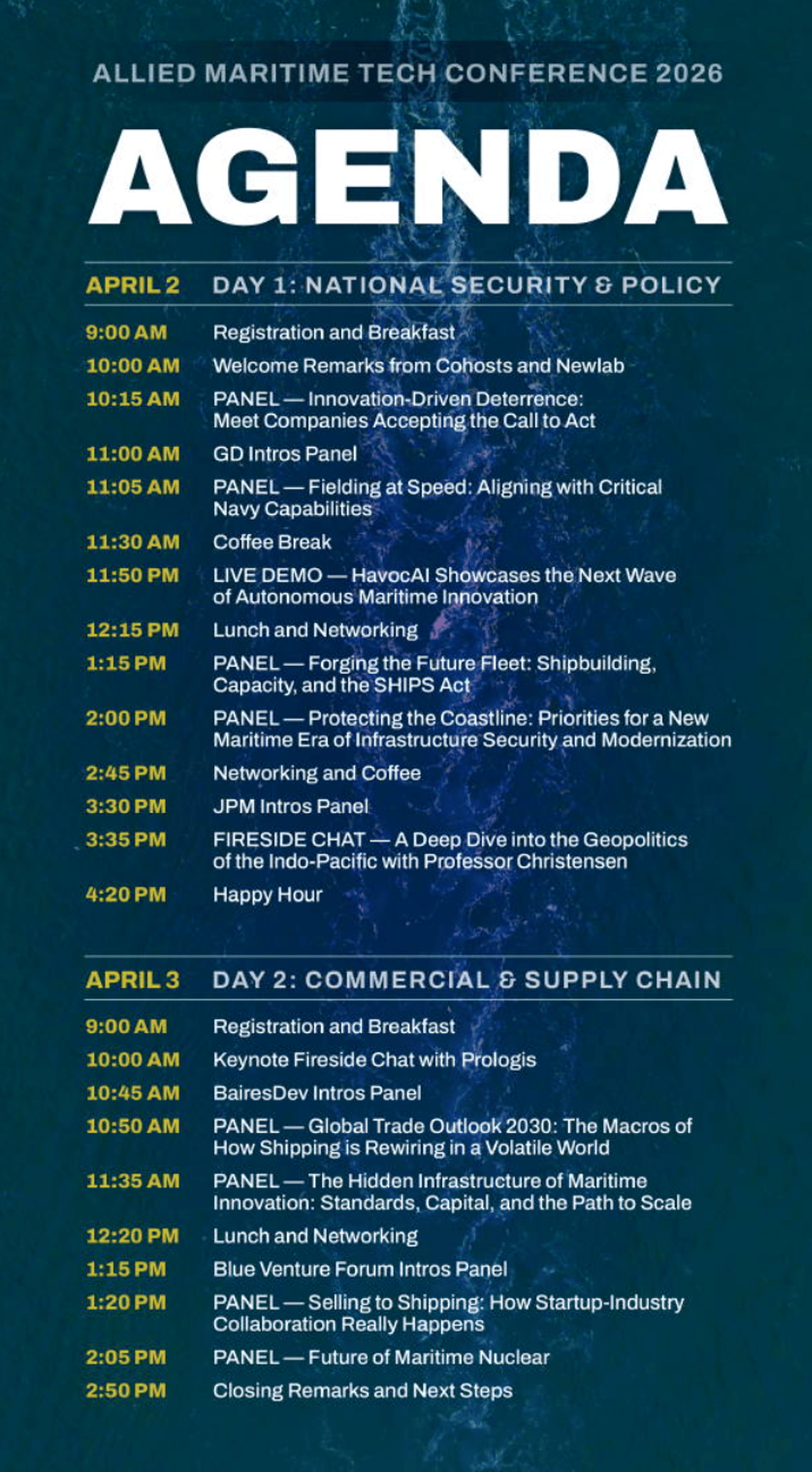 This Conference is intentionally designed around direct engagement with operators, acquisition leaders, commercial carriers, shipbuilders, investors, and allied partners- creating a forum where innovation moves beyond discussion and toward deployment.