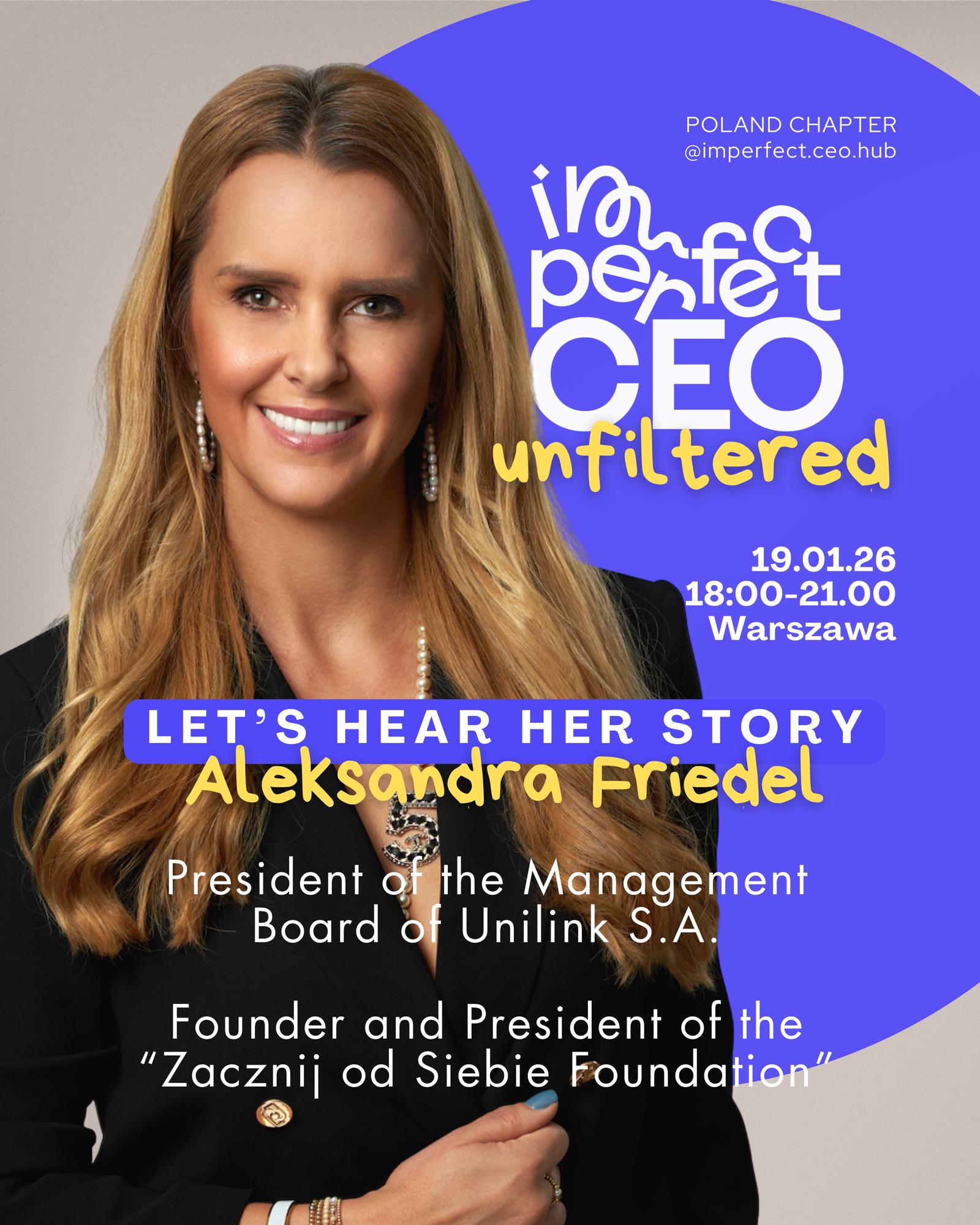 Aleksandra Friedel to jedna z najbardziej wyrazistych i charyzmatycznych liderek polskiego rynku ubezpieczeniowego, od lat realnie kształtująca jego standardy i kierunki rozwoju. Od 2015 roku współtworzy strategię Unilink S.A. - największej multiagencji ubezpieczeniowej w Polsce, wcześniej w roli Dyrektorki Finansowej, a od stycznia 2023 - stojąc na czele organizacji skupiającej kilkanaście tysięcy pracowników i partnerów.