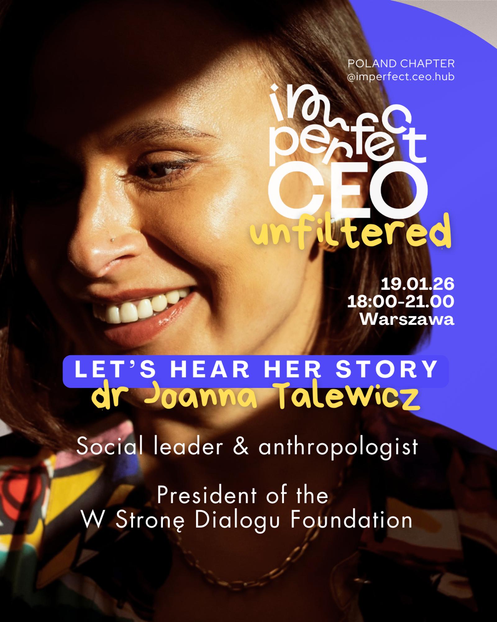 Dr Joanna Talewicz, liderka społeczna, antropolożka i ekspertka w obszarze różnorodności, inkluzji oraz przywództwa opartego na wartościach. Prezeska Fundacji W Stronę Dialogu oraz współtwórczyni innowacyjnych modeli współpracy między biznesem, instytucjami publicznymi i organizacjami społecznymi.