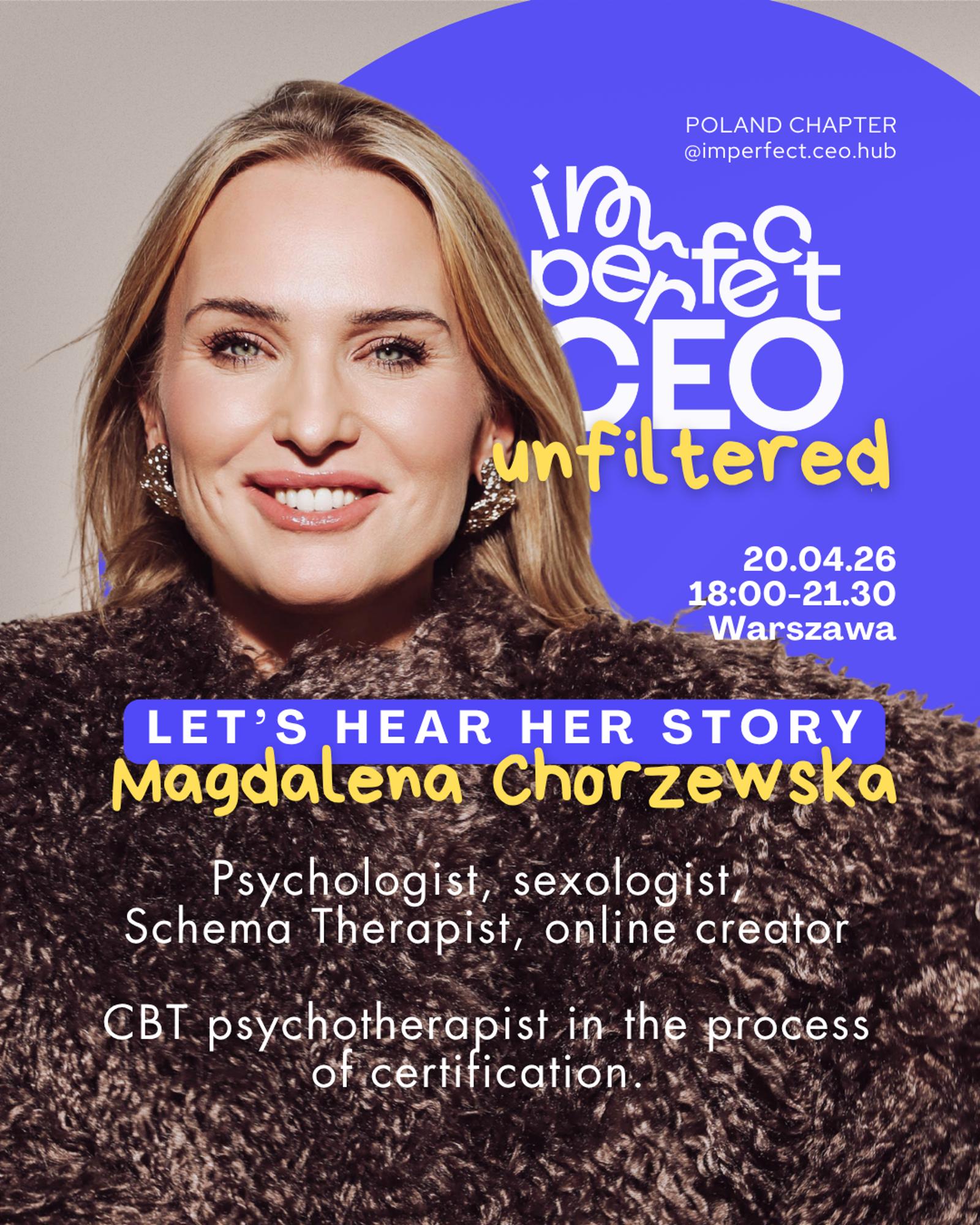 Naszą pierwszą panelistką będzie Magdalena Chorzewska, znana na Instagramie jako psycholożka, seksuolożka i psychoterapeutka, która na co dzień pracuje z kobietami na wysokich stanowiskach. Magda przyniesie na scenę konkretne historie z gabinetu i podzieli się praktycznymi wskazówkami: jak dbać o siebie w samotnej drodze liderki na szczyt, jak stawiać granice, jak nie zgubić siebie w pogoni za wynikami.