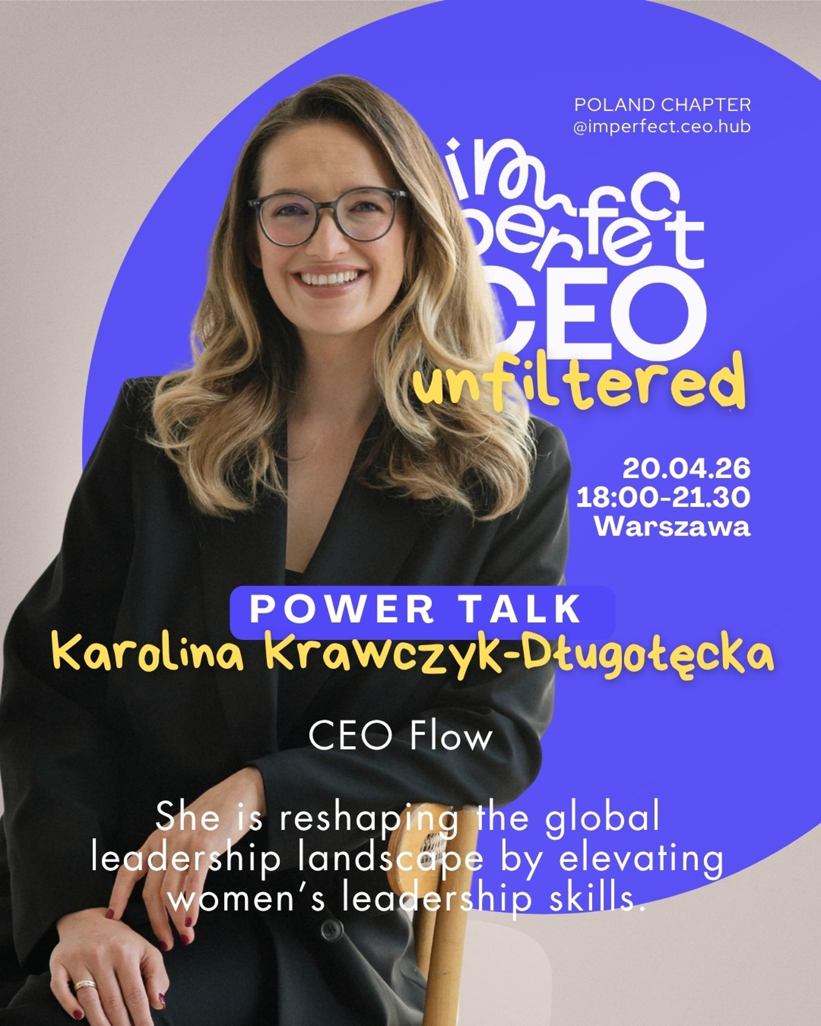 Zaprosiłyśmy Karolinę, ponieważ jest nie tylko doświadczoną liderką i ekspertką w obszarze rozwoju kobiet w przywództwie, ale także częścią naszej społeczności, która doskonale rozumie tematy ważne dla Imperfect CEO. Jej doświadczenie w branży finansowej, przy projektach transformacji cyfrowej i w pracy nad strategicznymi inicjatywami biznesowymi daje jej bardzo ciekawą perspektywę na to, jak naprawdę funkcjonuje przywództwo w organizacjach.