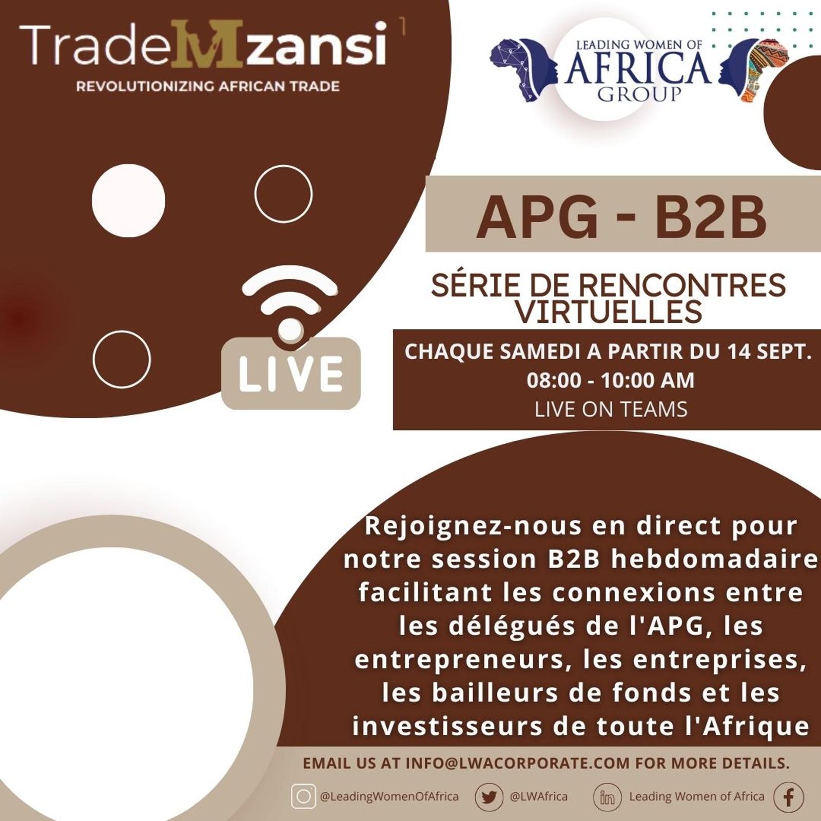 As we build up to the Africa Partnership for Growth (APG) Symposium & Awards 2024, we are excited to launch a series of Virtual B2B events, taking place every Saturday morning leading up to the main event in Cape Town, November 2024. These exclusive webinars aim to foster connections among APG delegates, entrepreneurs, businesses, funders, and investors from across Africa. Powered by TradeMzansi, a dynamic B2B marketplace and funding matchmaking portal, the series will provide access to market opportunities, funding avenues, and economic growth prospects across the continent.