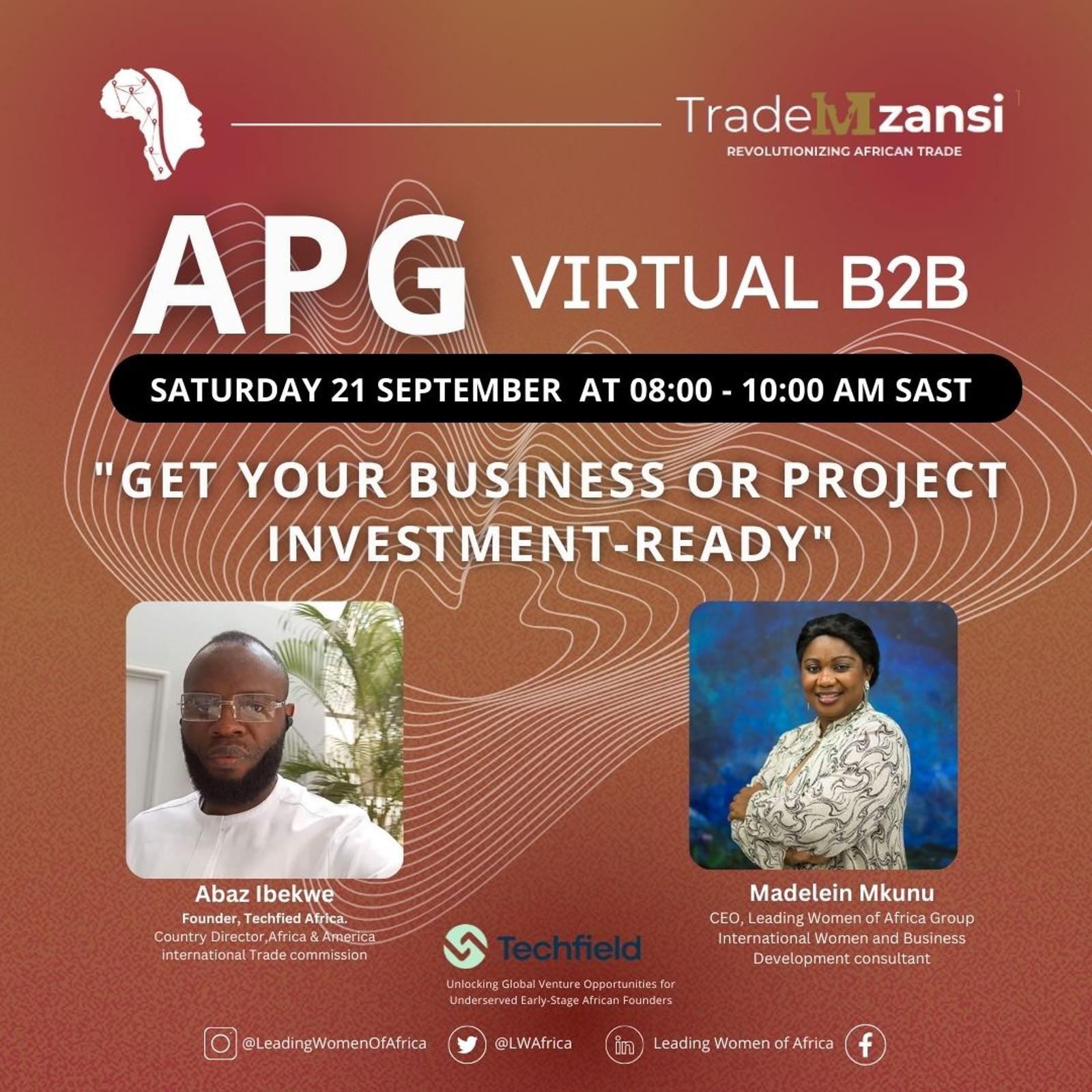 APG B2B SERIES: GET YOUR BUSINESS AND PROJECT INVESTOR-READY, 21 Septembe 2024, 8am SAST