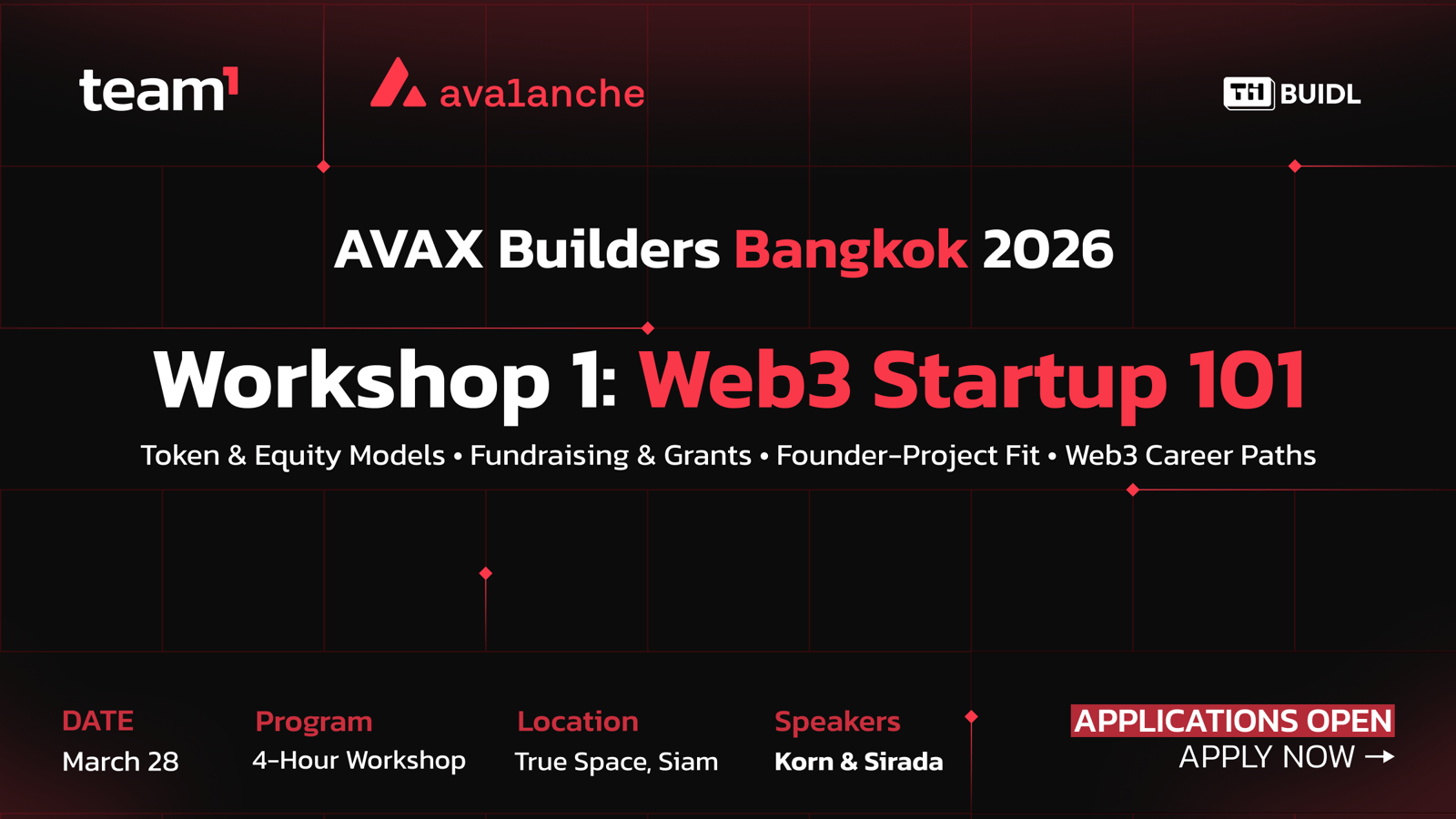 Whether you're new to Web3, exploring the Avalanche ecosystem, or already building on-chain — this is your chance to connect with fellow builders, founders, and community members in Thailand.