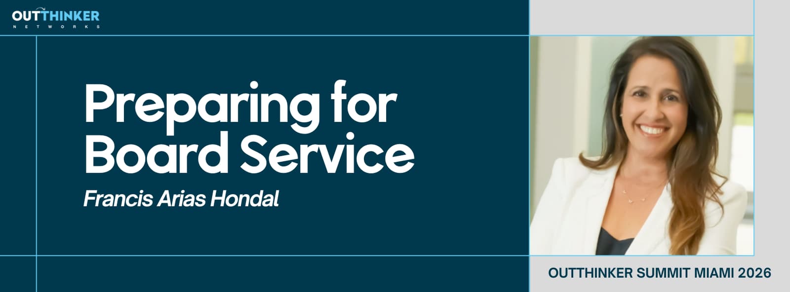 Many Outthinker members serve on and are interested in serving on boards. Francis will walk us through how to prepare yourself for board service, how to get on the radar of the individuals and firms that place executives on boards, and what the key capabilities and questions are that you should be thinking about.