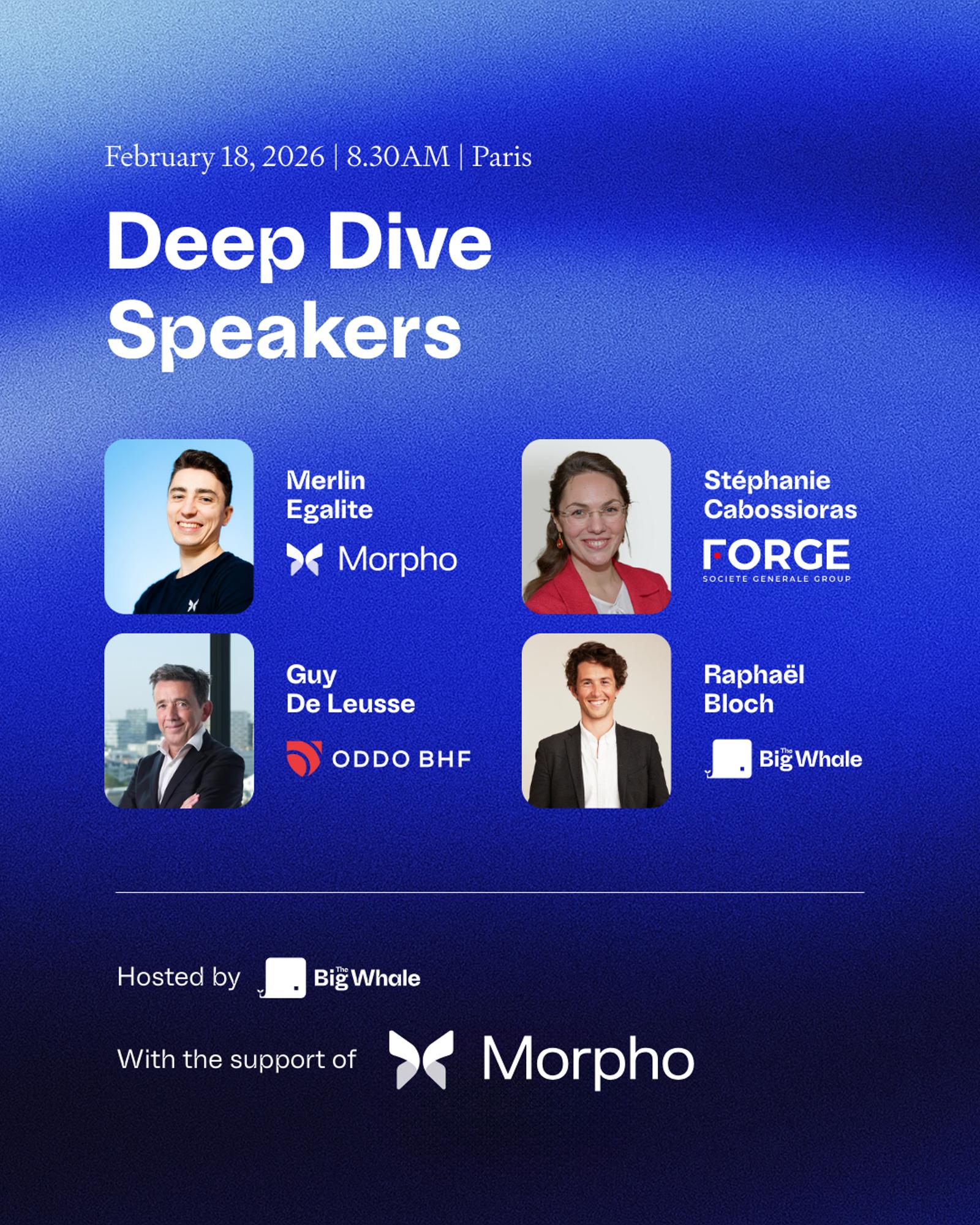 We’ll discuss all of this with SG Forge and ODDO BHF, exploring how these banks are navigating the decentralized landscape, and with Morpho, one of the largest DeFi protocols today, leading innovation in this space.