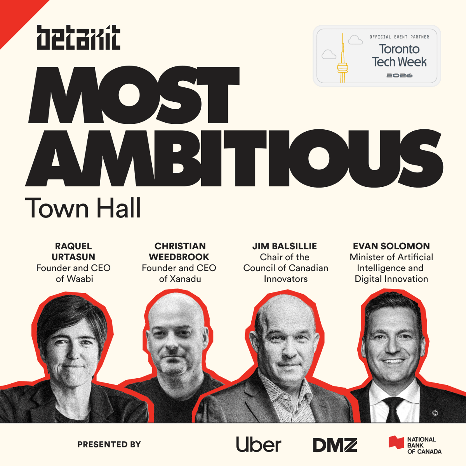 This special event will mark the release of the 2026 BetaKit Most Ambitious issue, presented by Uber, DMZ, and National Bank, telling stories of bold ambition in Canadian tech.