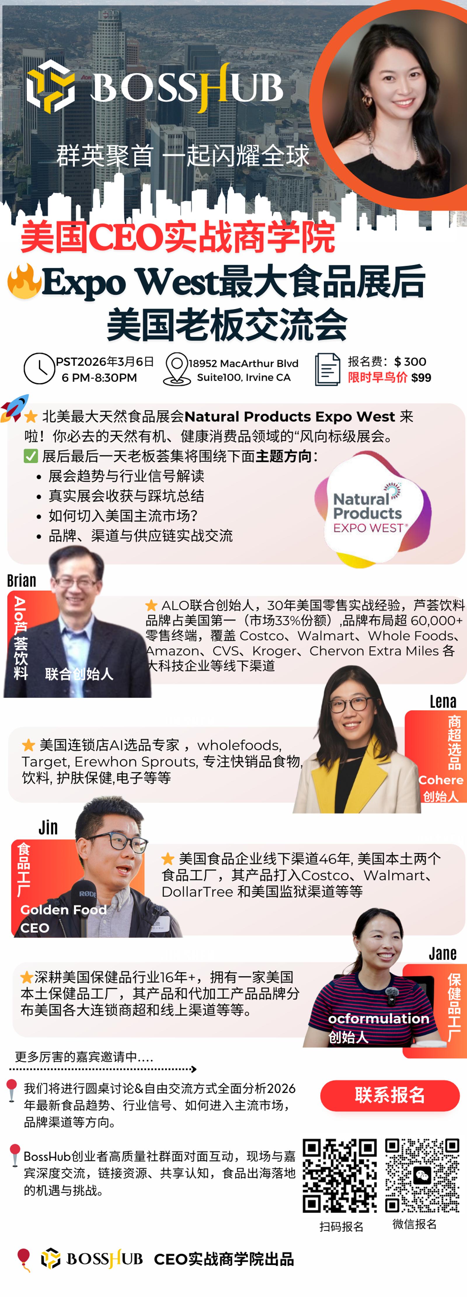 食品、饮料、健康产品创业者,或正在布局美国市场的品牌方。