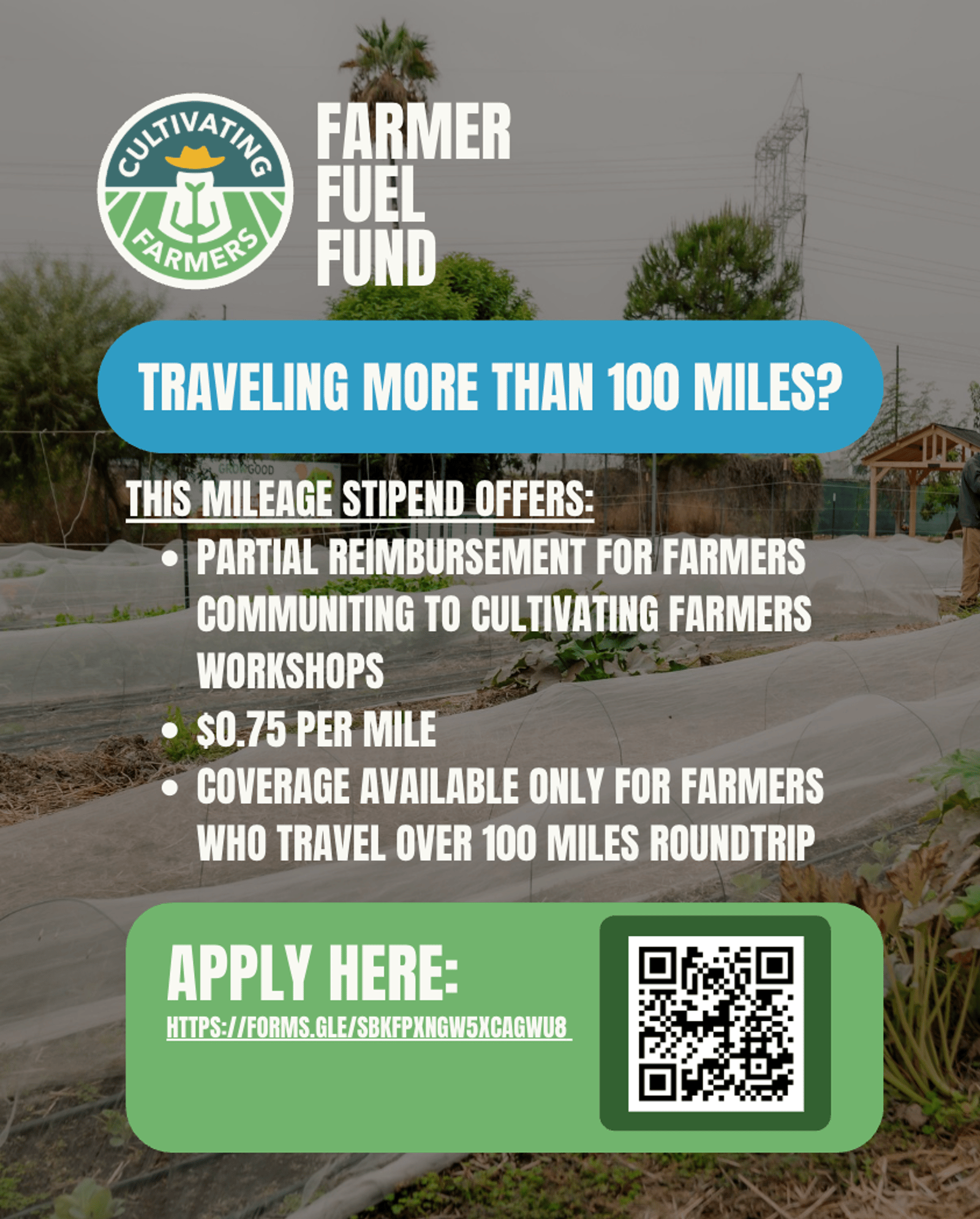 We’re bringing back the Farmer Fuel Fund! This opportunity allows growers commuting over 100 miles round-trip to have some of their travel expenses covered.