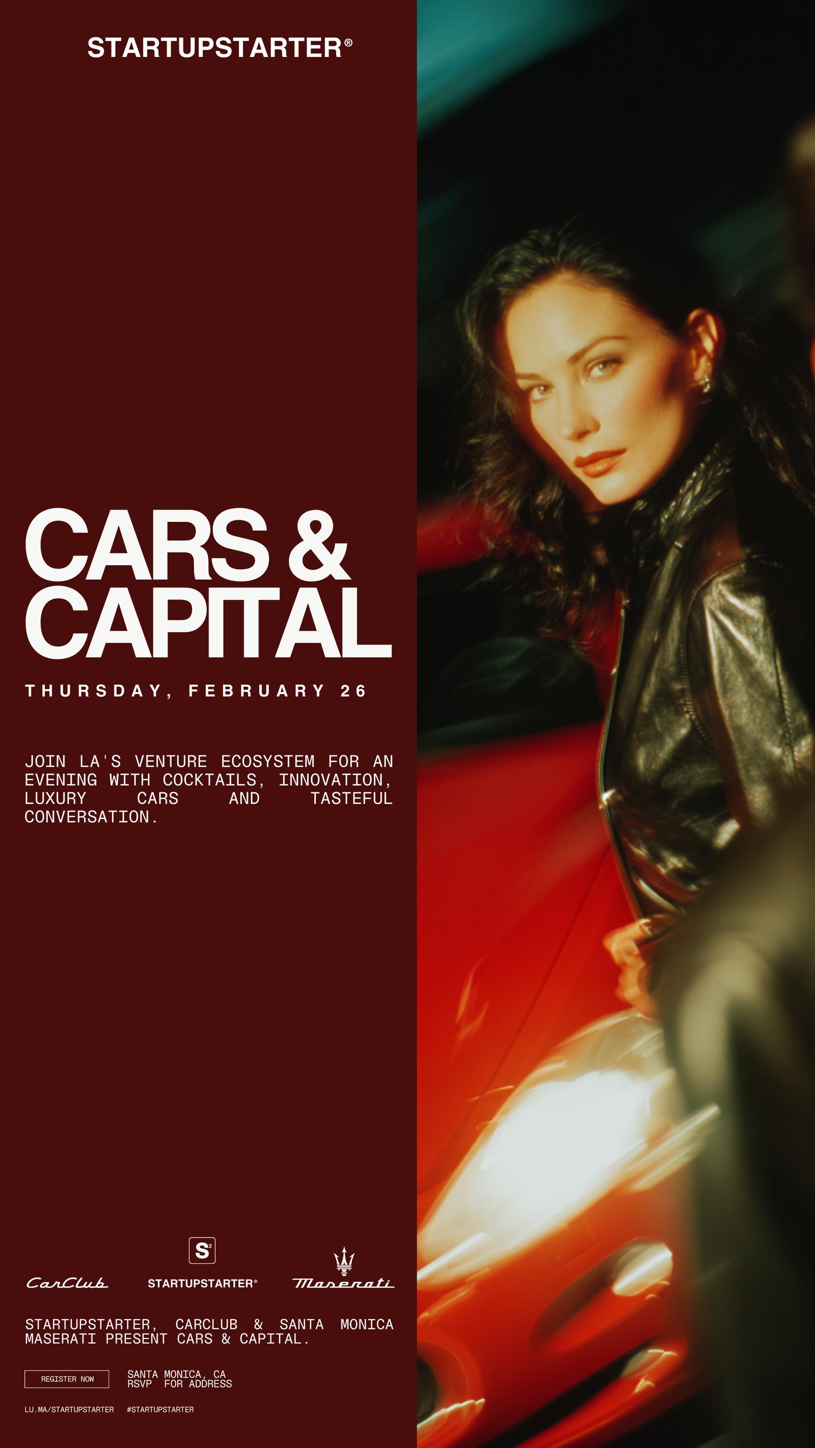 You are cordially invited to join us for Cars & Capital, an exclusive event for Founders, Creators, Family Offices and Investors.