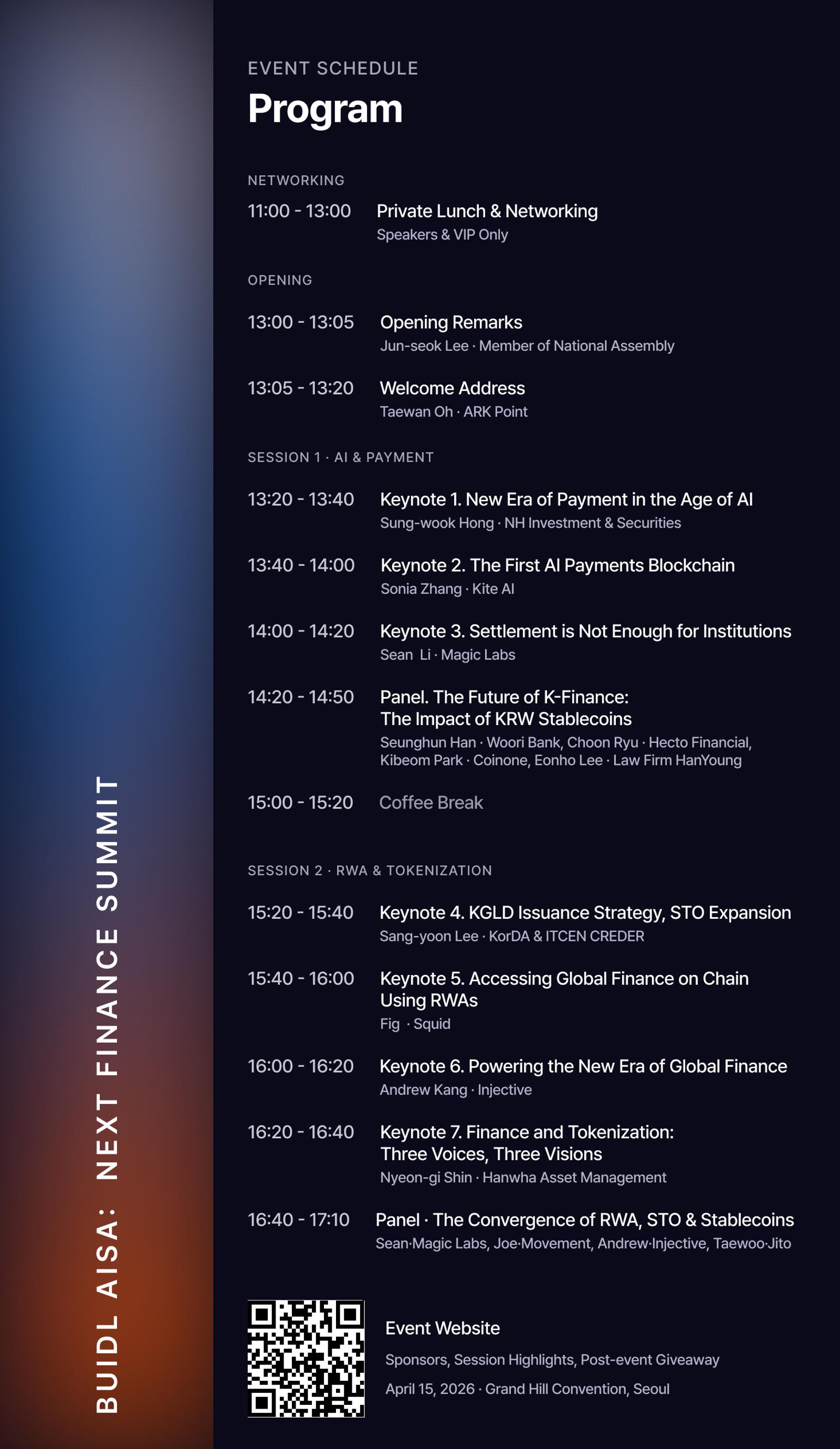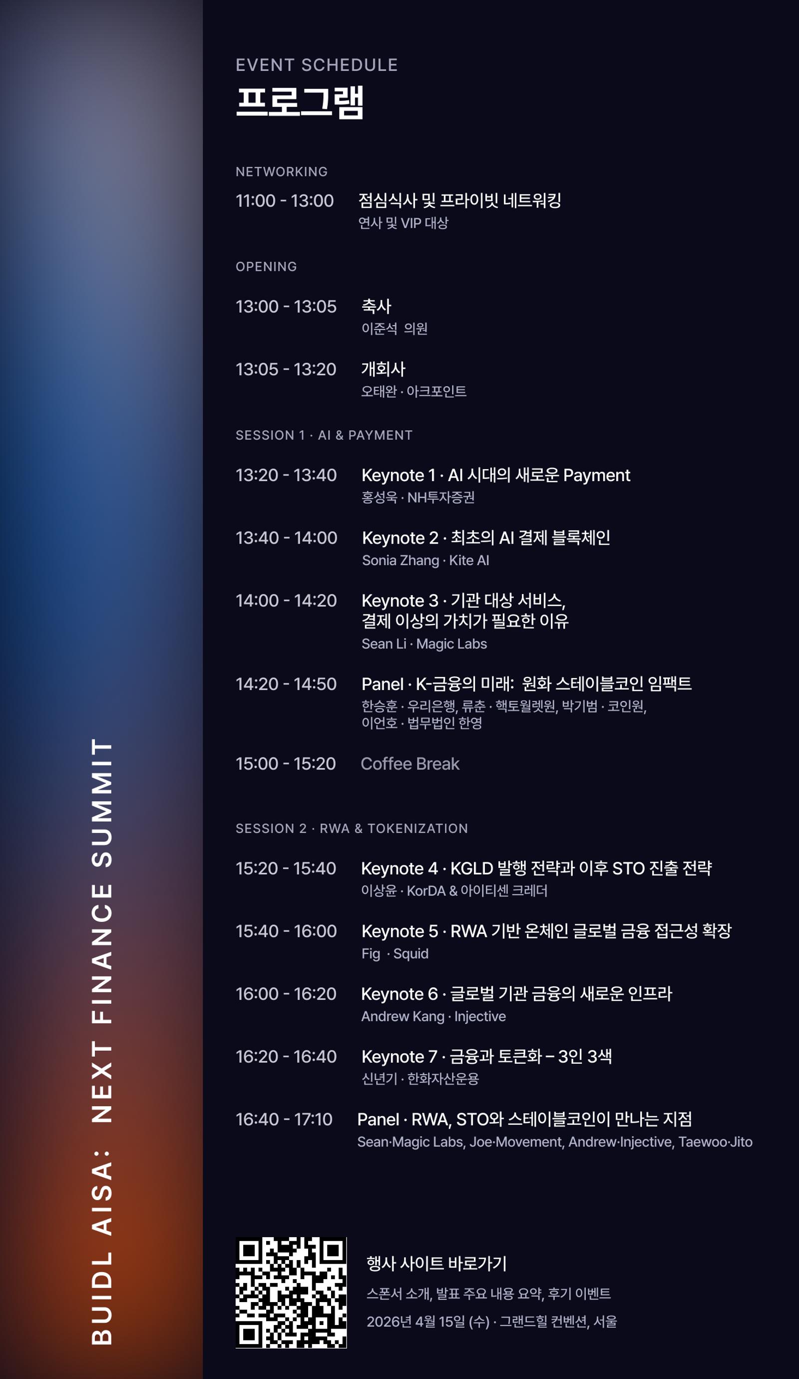 본 행사에서는 글로벌 기업들이 주목하는 '자산 토큰화(RWA)'와 '스테이블코인'의 실질적인 비즈니스 모델을 집중 조명합니다.