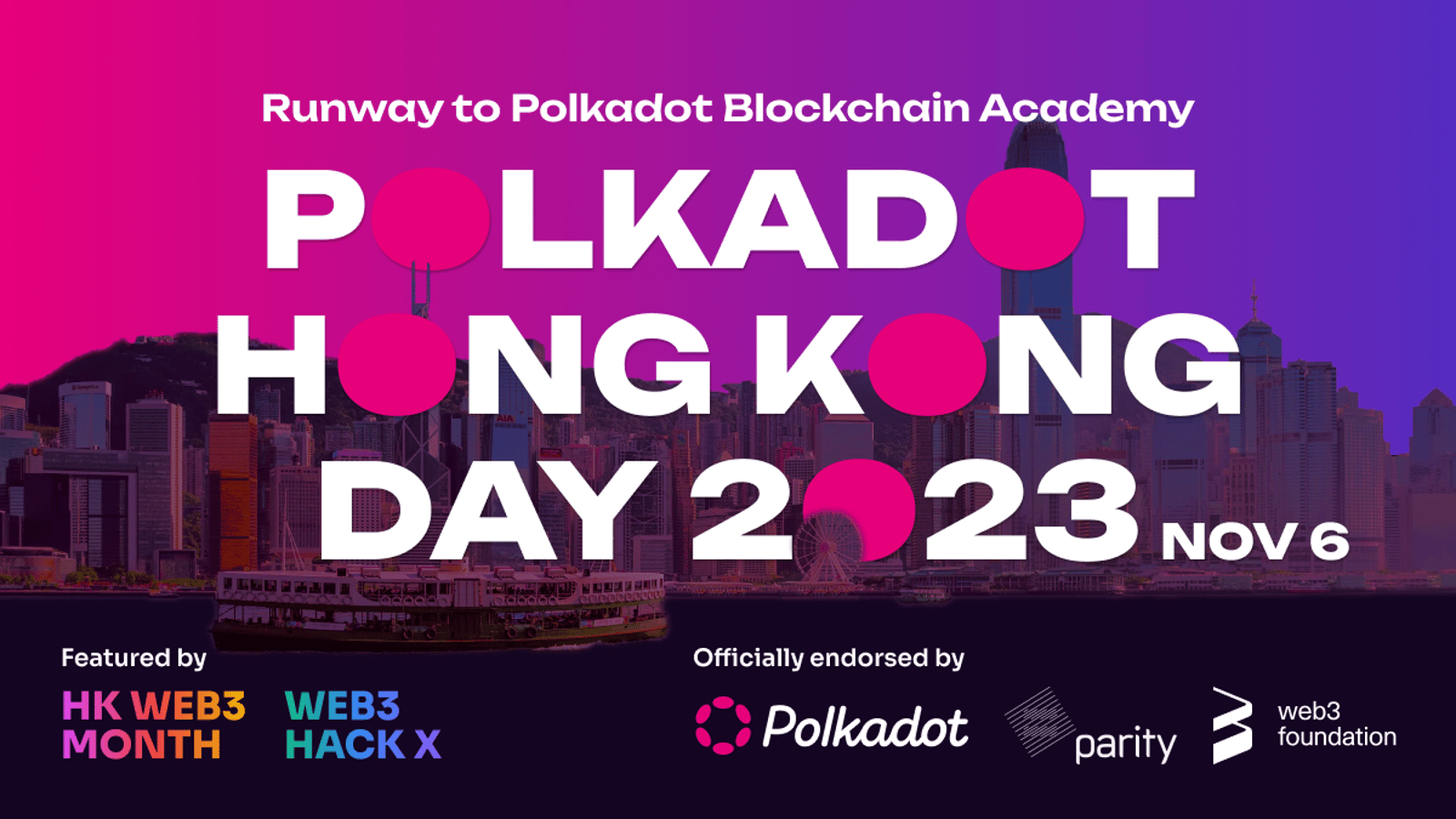 "Polkadot HK Day: Runway to Polkadot Blockchain Academy" is officially endorsed by Parity, and Web3 Foundation.