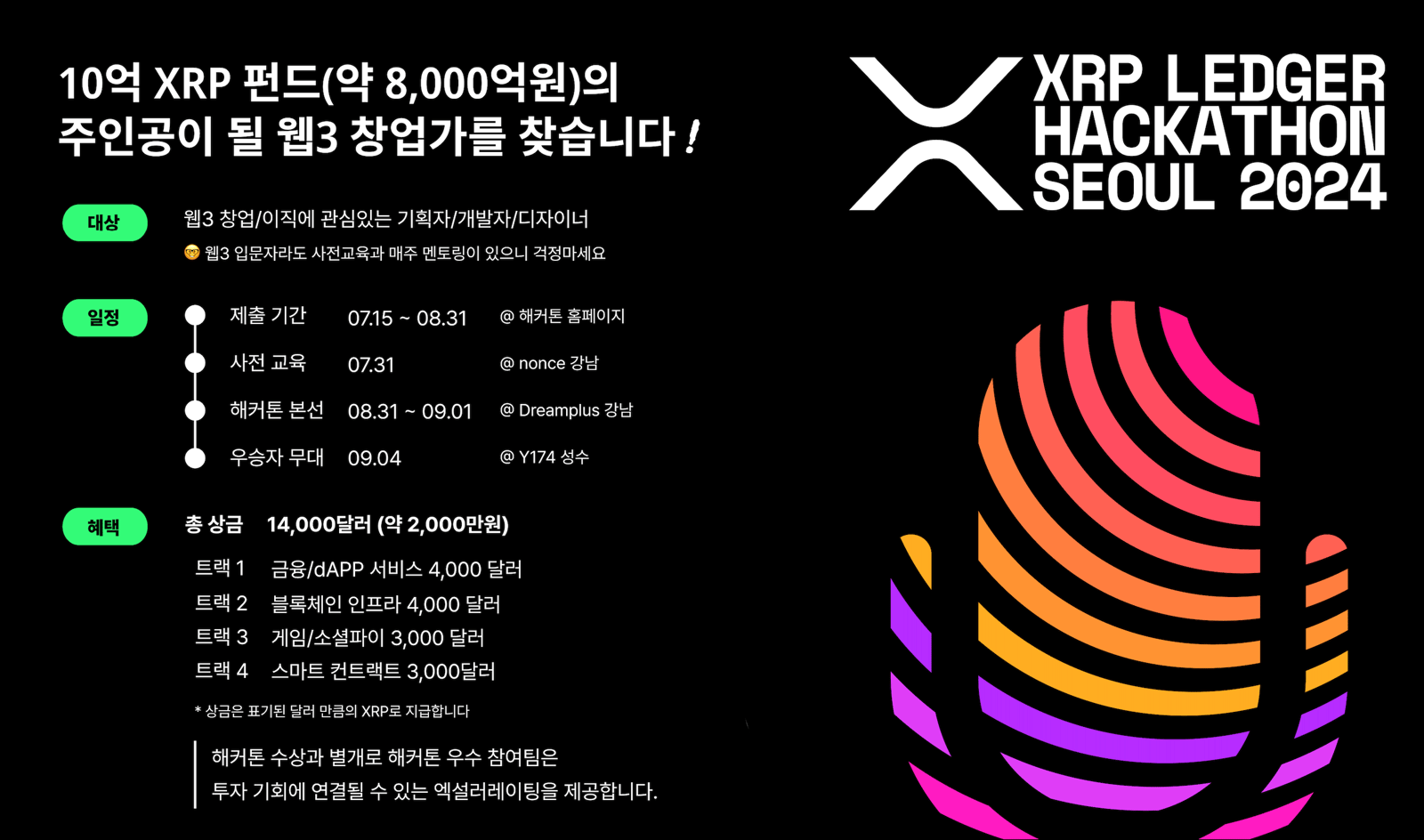 XRP Ledger가 10억 XRP(약 8,000억원)의 펀드 출범과 함께 한국 생태계를 적극 확장합니다! 한국에서 열리는 첫번째 해커톤에 웹3 창업가로 성장하고자 하는 빌더분을 초대합니다.