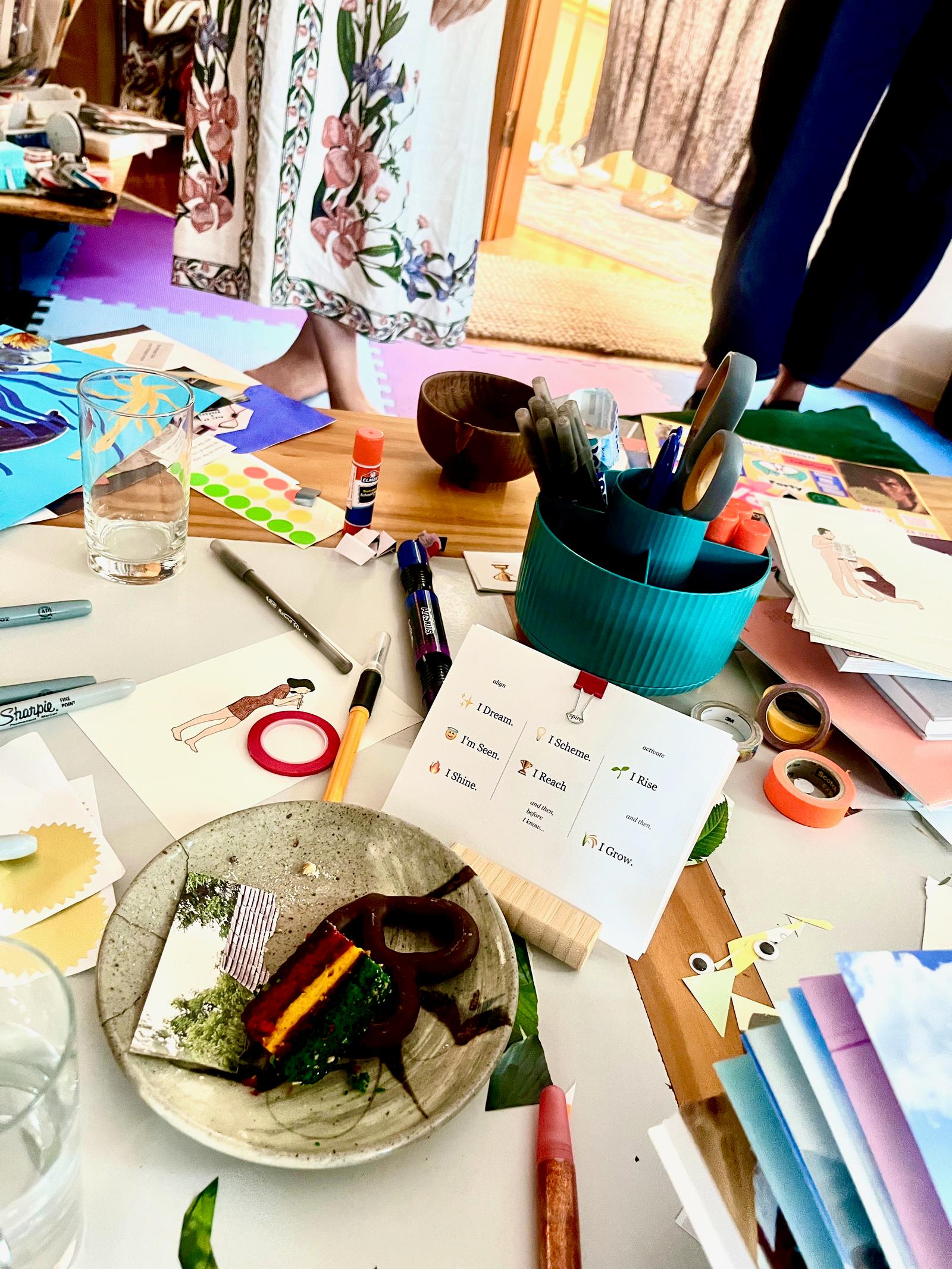 🧚♂️ We will hold space at our beautiful studio at the Queens Well. All materials, reflection prompts, and light refreshments will be provided. Feel free to bring anything additional including your favorite crafting supplies, prior visionings, and any favorite morsels and libations.
