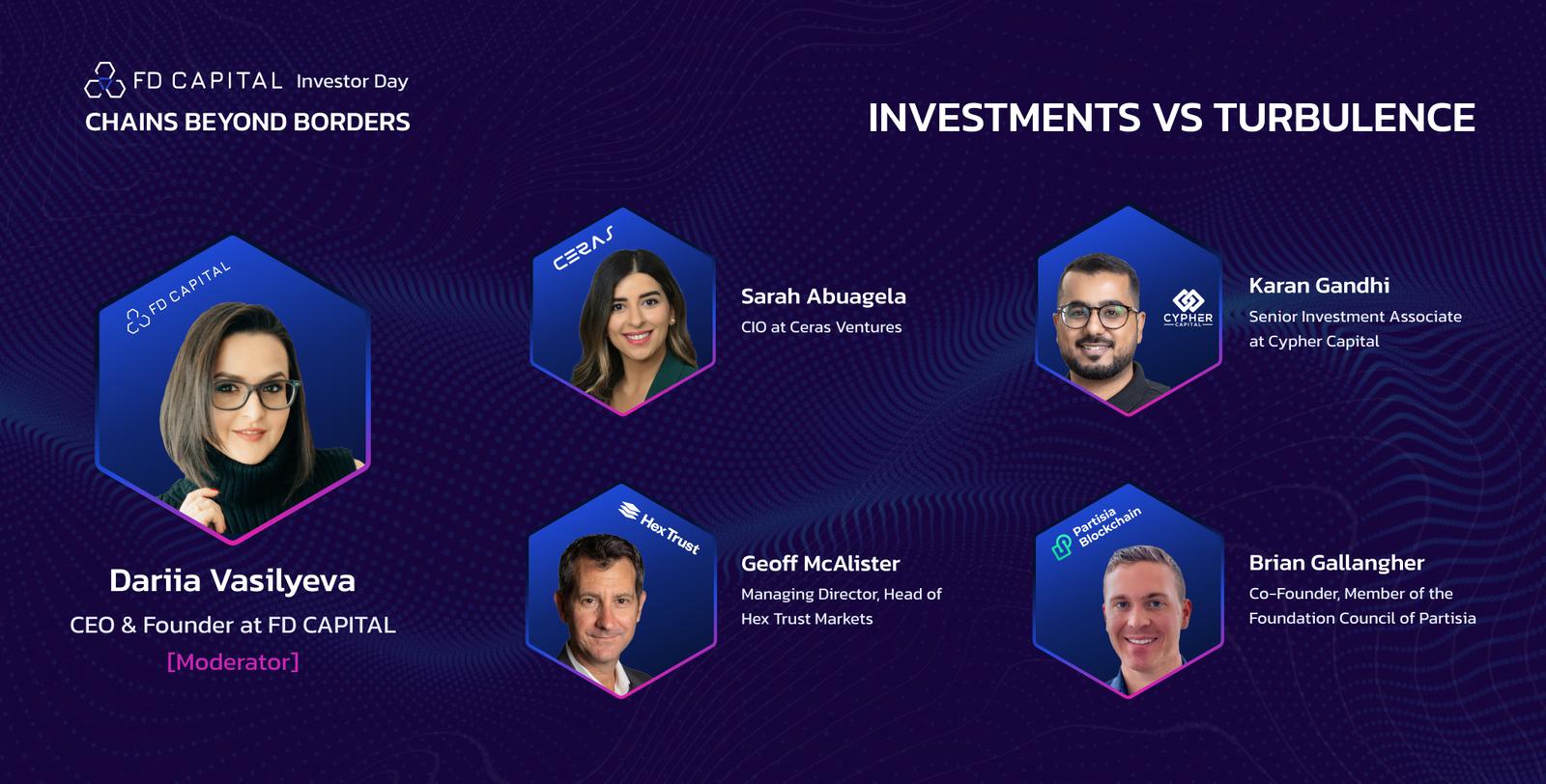 "In the ever-changing landscape of Investments vs Turbulence, our vision is clear: We believe that by transcending borders, we can unlock new investment opportunities, foster strategic partnerships, and drive the evolution of the blockchain industry towards a more interconnected future. Together, we empower the community to unleash its potential and create a transformative impact in the blockchain industry and beyond.", says Dariia Vasylieva, Founding Partner FD CAPITAL.