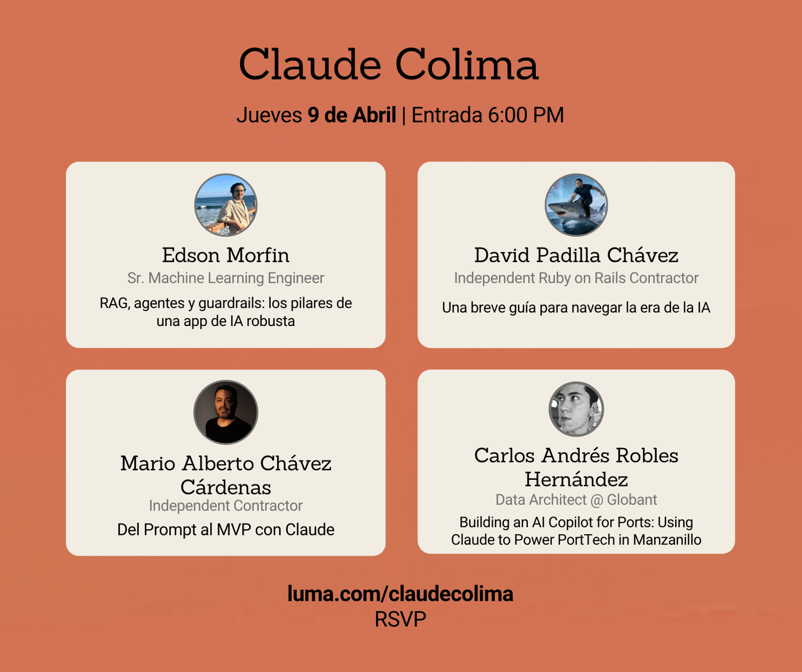 🎤 Carlos Andrés Robles Hernández — Data Architect @ Globant Building an AI Copilot for Ports: Using Claude to Power PortTech in Manzanillo