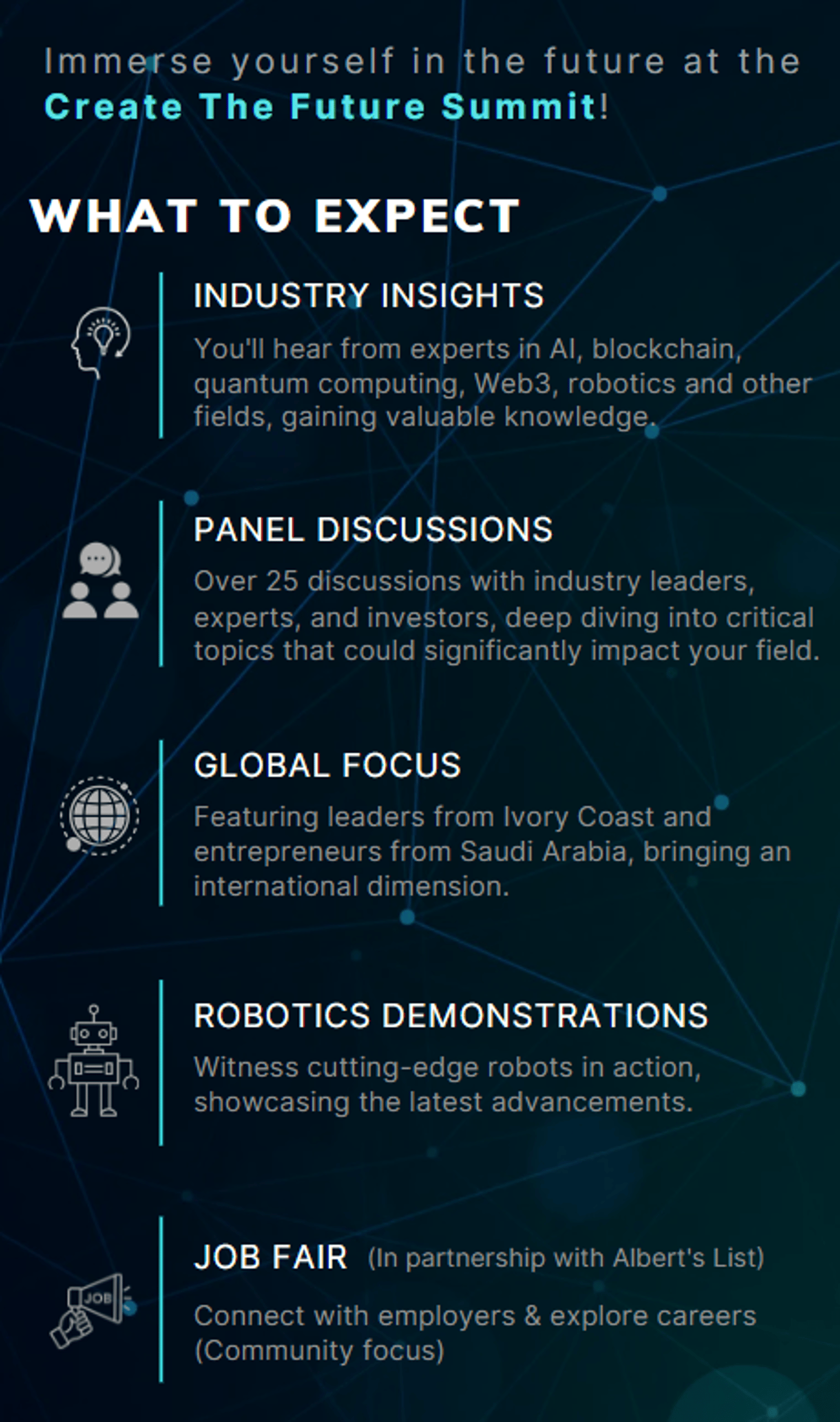 The summit features over 25 panels covering AI, Quantum Computing, Web3, and more. From AI’s impact on workplaces to the future of robotics, join us for a day of innovation and inspiration. Join us for a groundbreaking one-day conference where innovation meets opportunity!