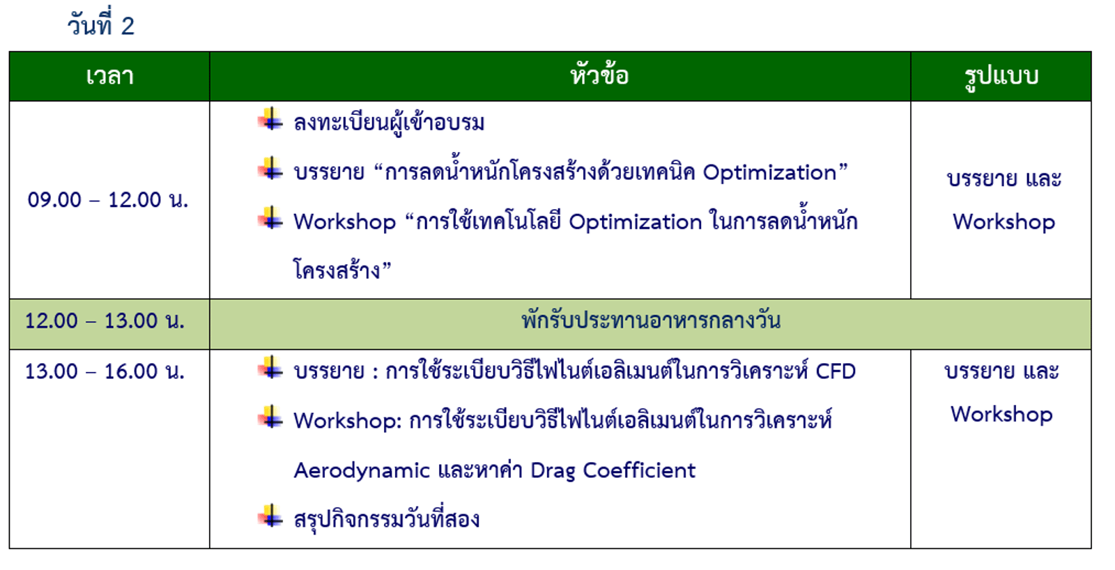 (รวมจำนวน 16 ชั่วโมง/2 วันทำการ)