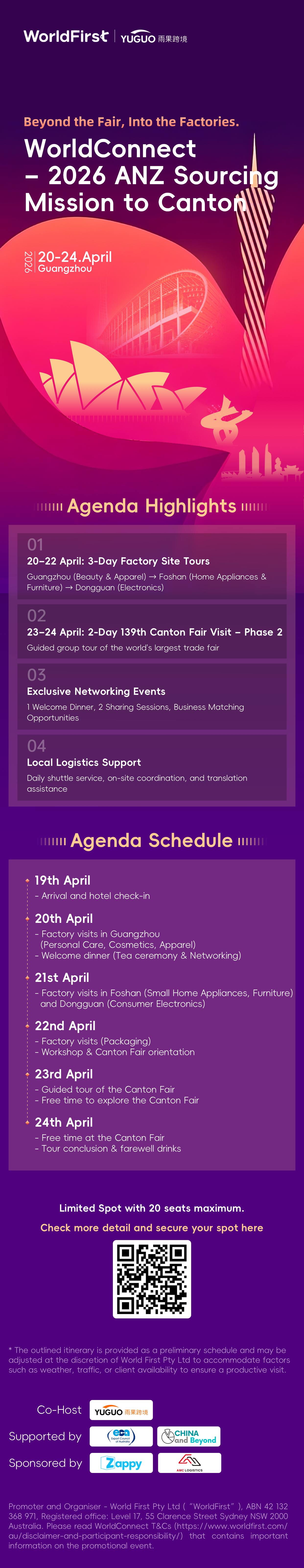 · Complimentary Local Support: Daily shuttle service, one welcome dinner, two thematic workshops & sharing sessions, plus lunch on each factory visit day.