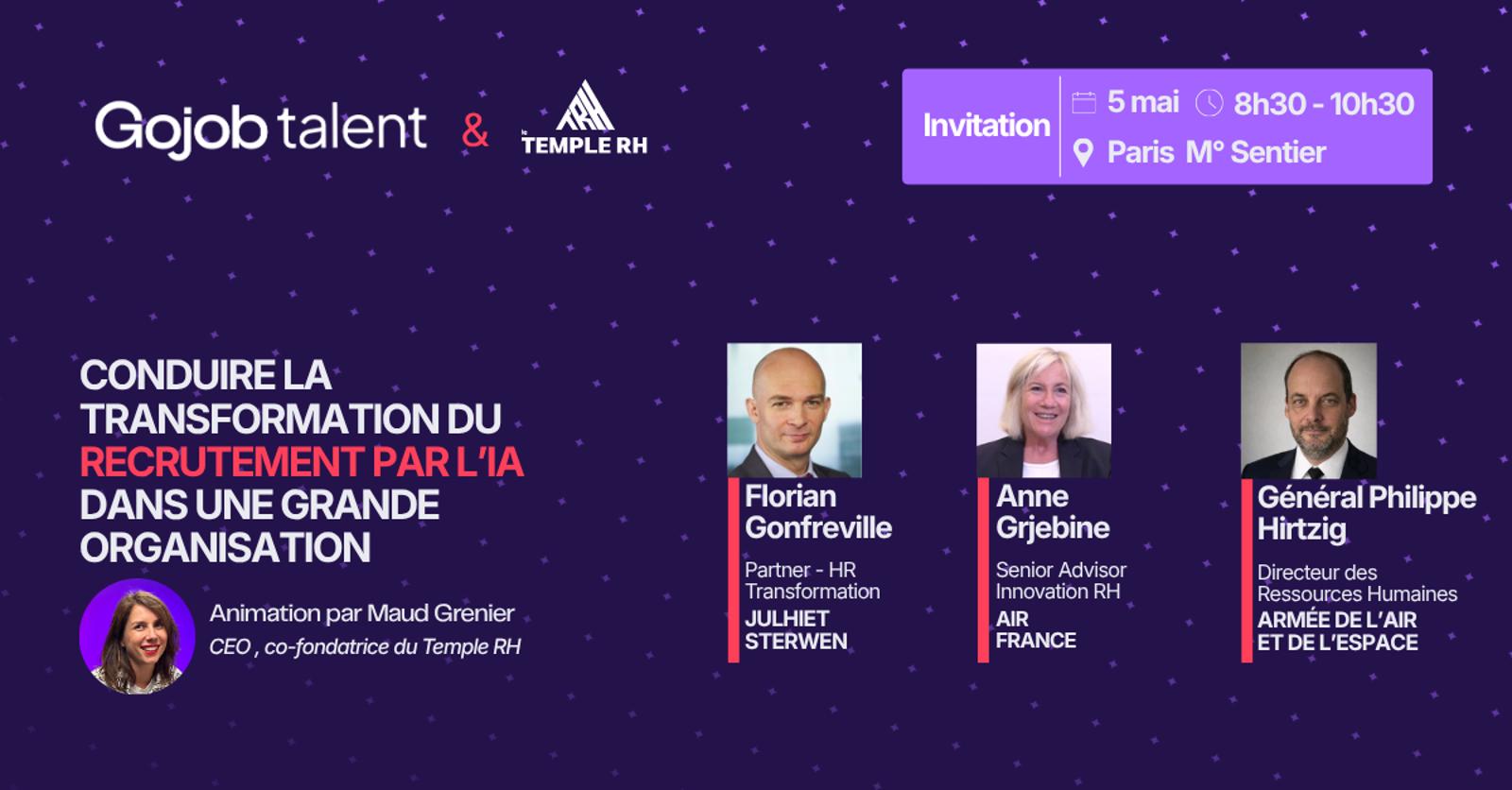 Gojob, leader HR tech et membre du French Tech Next40, réunit un cercle restreint de professionnels RH pour un échange franc sur la transformation du recrutement par l'IA au sein des grandes organisations.