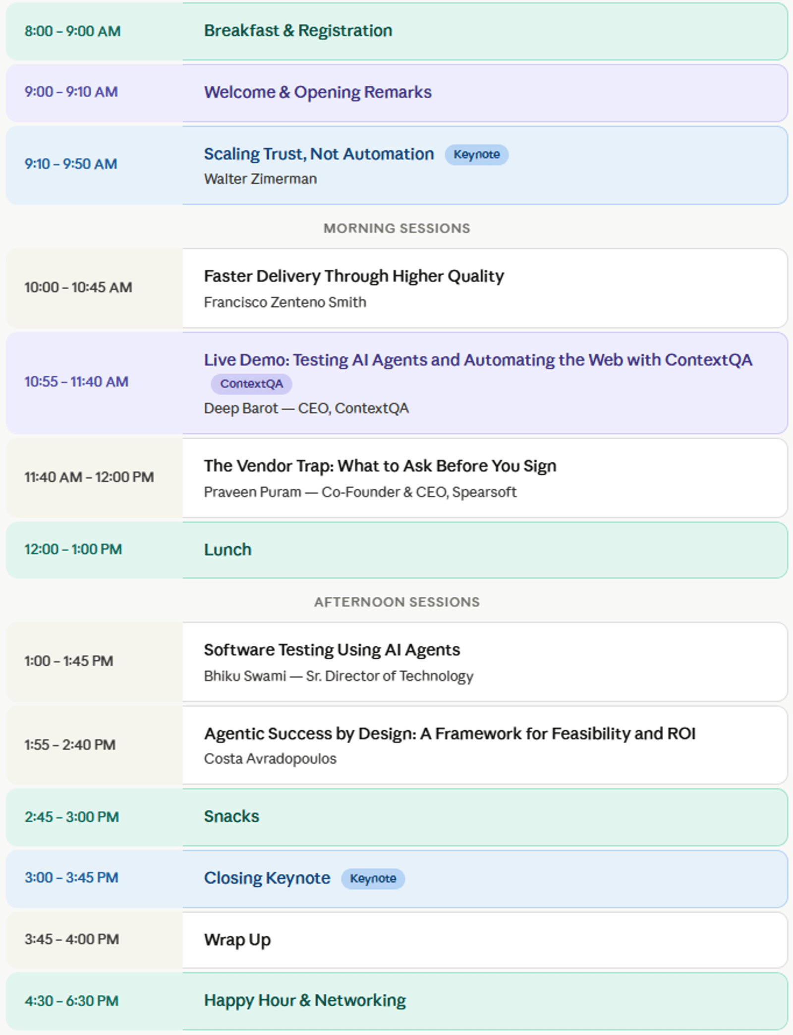 The Agentic Quality Summit is a traveling conference series hosted by ContextQA and Spearsoft, in partnership with Innovate QA — brought together to support the leaders driving that transformation. This is where VP- and Director-level quality and engineering executives come together to share what's actually working, learn from real-world AI adoption stories, and walk away with a clear path forward for their organizations.