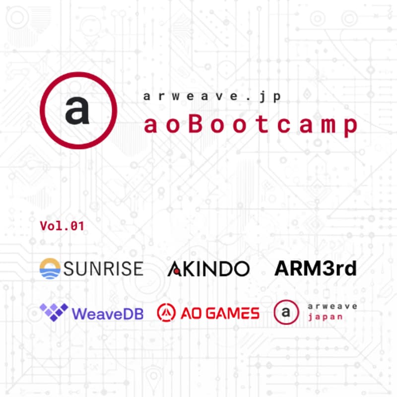 Arweave / AO の開発をゼロから学ぶブートキャンプ第一弾を開催します!今回は AO での開発経験がない方でも Arweave へのファイルアップロードの仕方から、AO を使ったスマートコントラクトの開発までを日本語チュートリアルを使って一緒に黙々学習します。 開発用のノートパソコンをご持参ください。