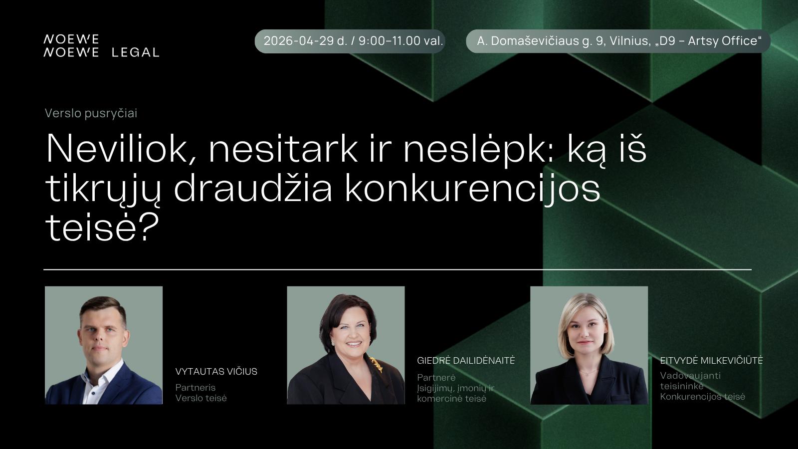 Cover Image for VERSLO PUSRYČIAI NEVILIOK, NESITARK IR NESLĖPK: KĄ IŠ TIKRŲJŲ DRAUDŽIA KONKURENCIJOS TEISĖ?