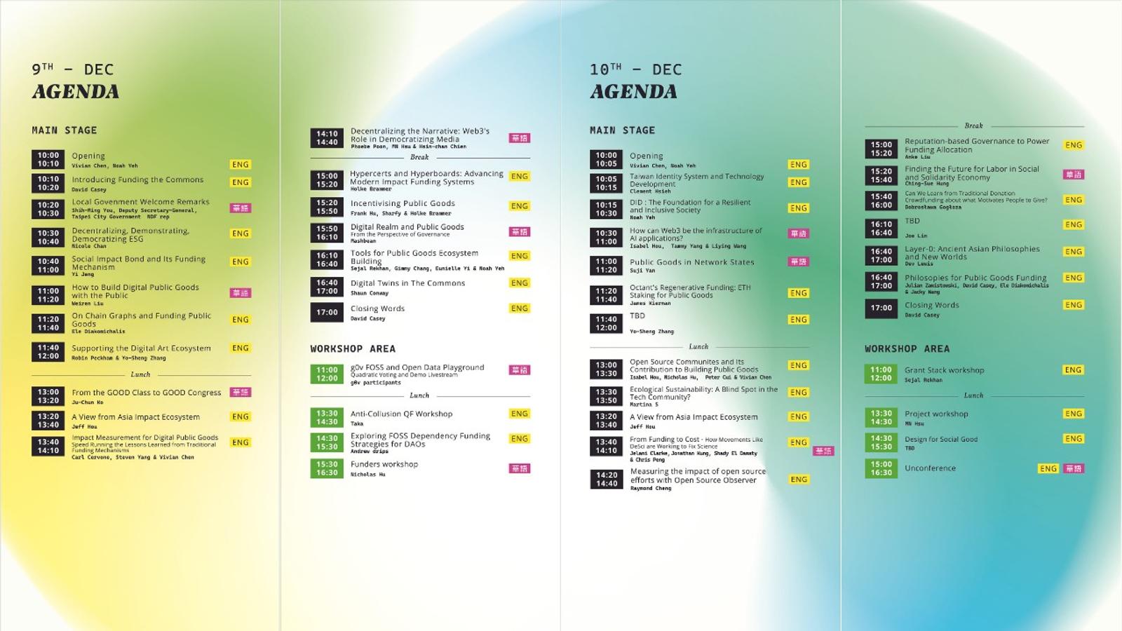 臺北以發展數位民主為名。座落在亞洲的中心,台北除了擁有豐富的傳統歷史之外,同時也是公民科技團體 g0v 的發源地。本次 Funding the Commons 特別和 g0v 旗下的 web3 分支 da0 合作,目標創造獨一無二的公共財討論體驗。