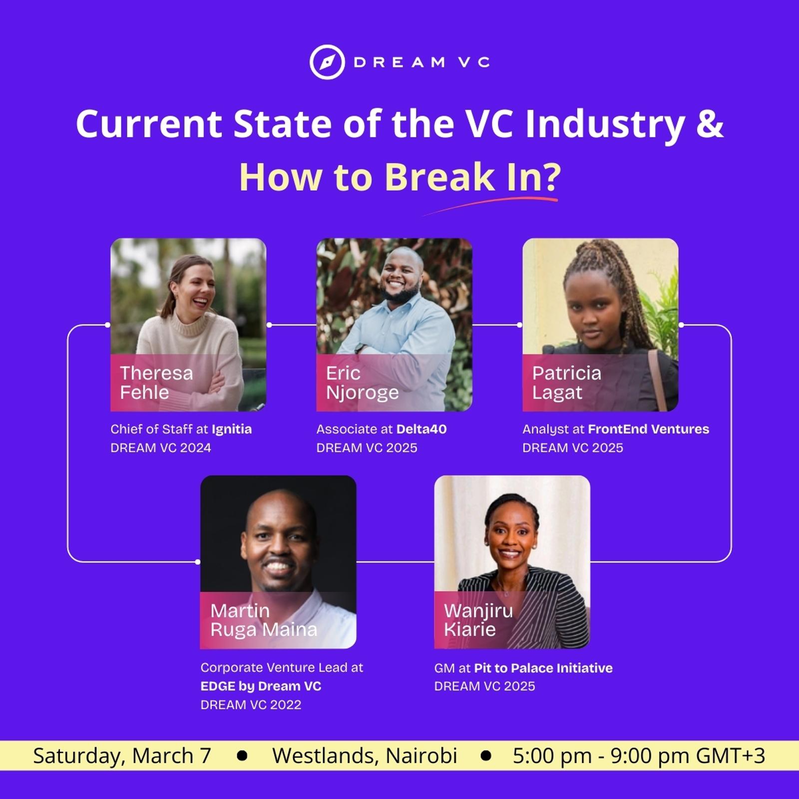 This is a rare opportunity to connect with Dream VC leadership while they’re in town, and to network with alumni from across our venture capital fellowship programs. Meet members of our 50+ strong Nairobi fellow community and hear firsthand how they are building careers in venture, launching funds, supporting founders, and shaping the ecosystem.
