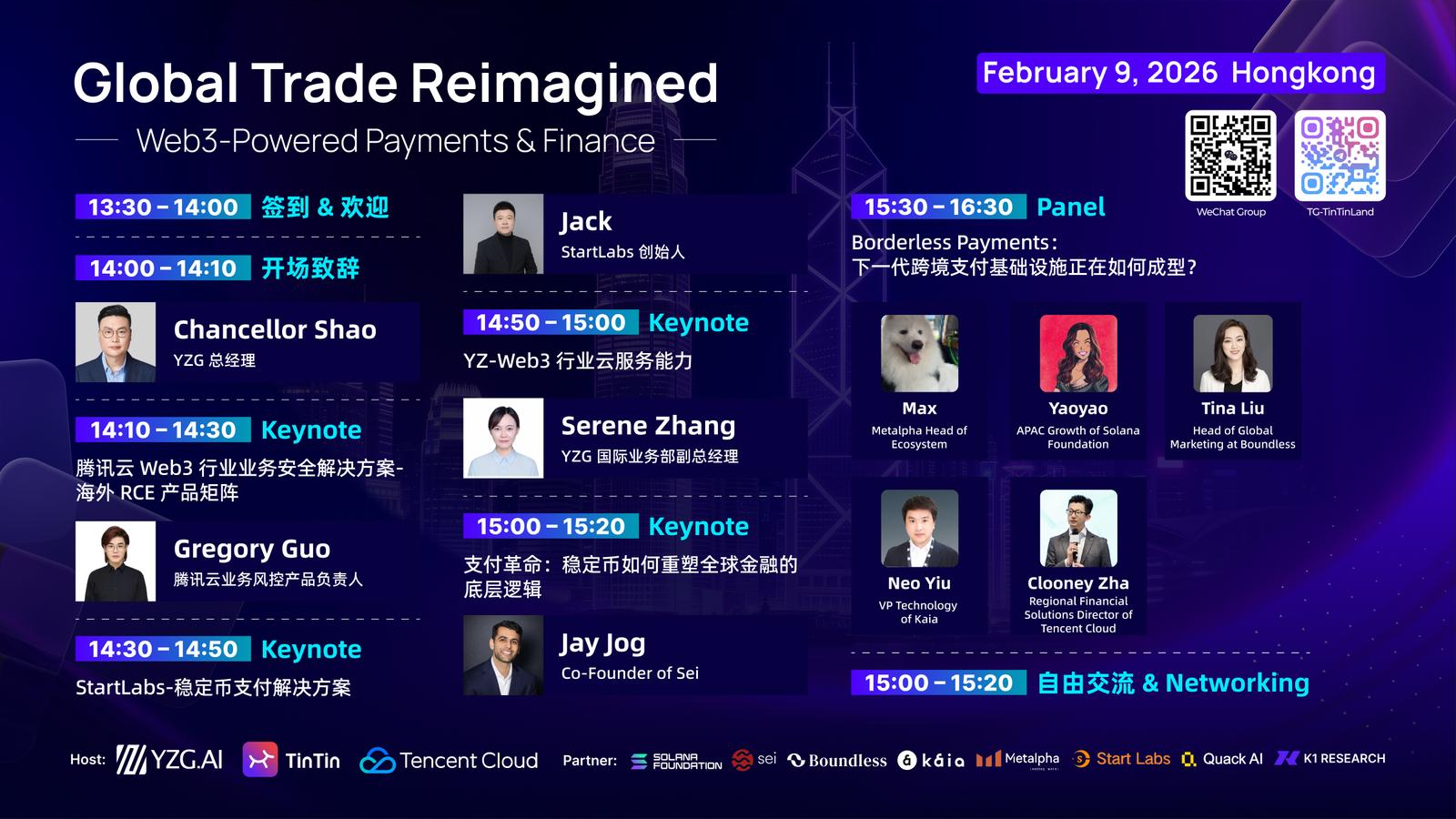 During Consensus Hong Kong 2026, TinTin and Tencent Cloud will co-host a highly curated side event focused on Web3-powered payments, finance, and cross-border settlement, bringing together industry leaders for real insight and meaningful connections.