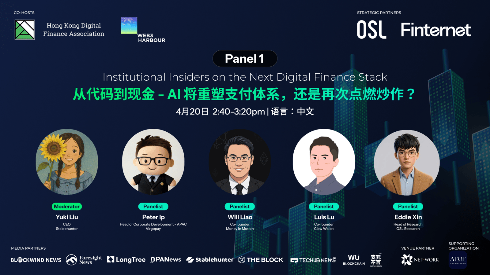 14:40 – 15:10 | Panel 1 (Mandarin): AI Payment:机会窗口,还是下一轮泡沫?AI Payment: A Real Opportunity Window or the Next Bubble?