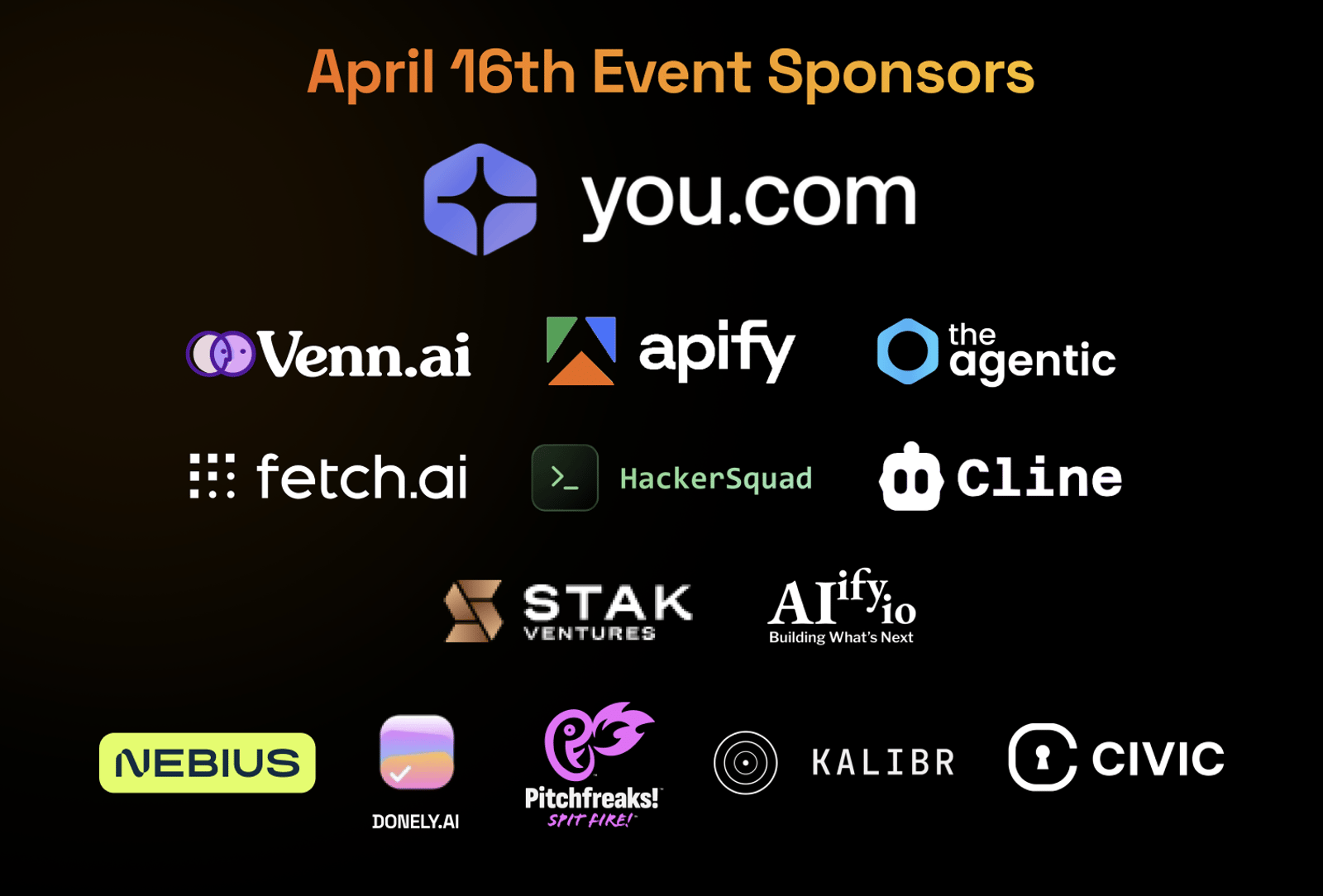 You.com • Venn.ai • Apify • theAgentic • Cline • Fetch.ai • Aiify • STAK Ventures • HackerSquad & More
