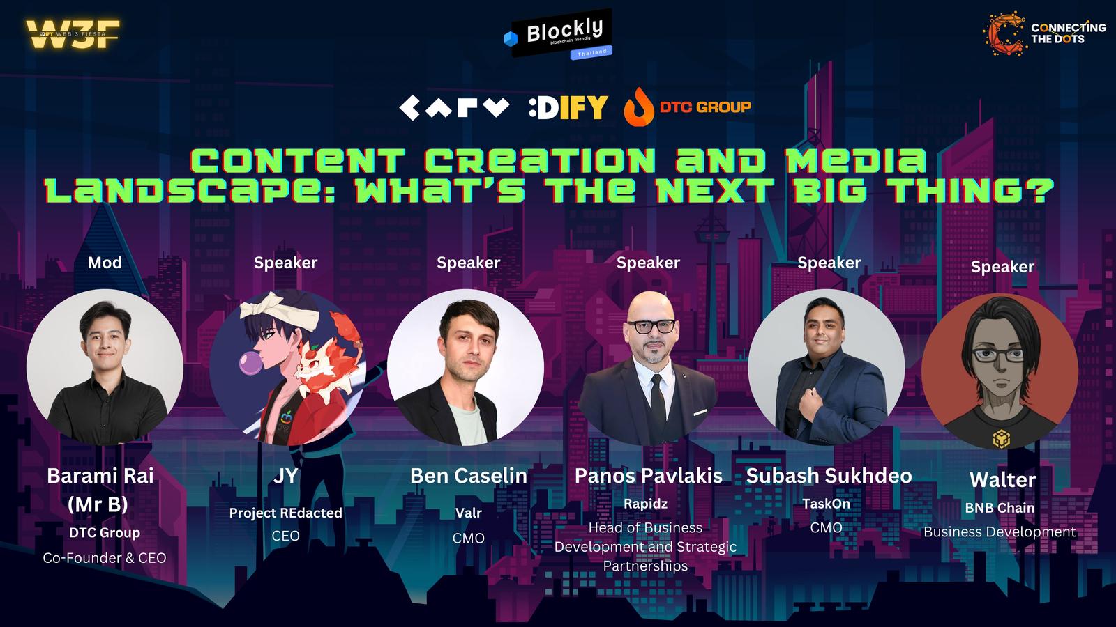 Speakers: Barami Rai (Mr B) (DTC Group), JY (Project REdacted), Ben Caselin (Valr), Panos Pavlakis (Rapidz), Subash Sukhdeo (TaskOn), Walter (BNB Chain)