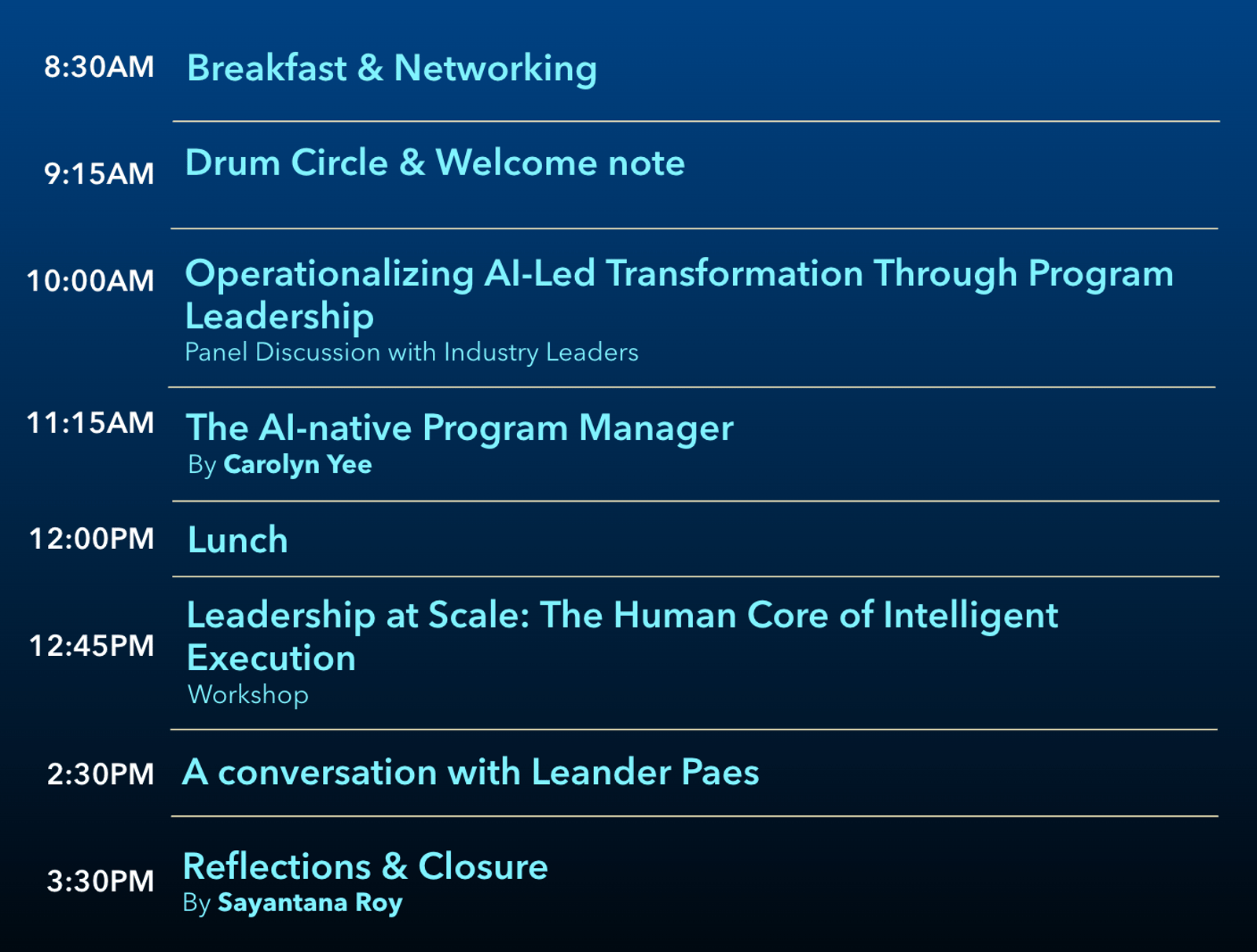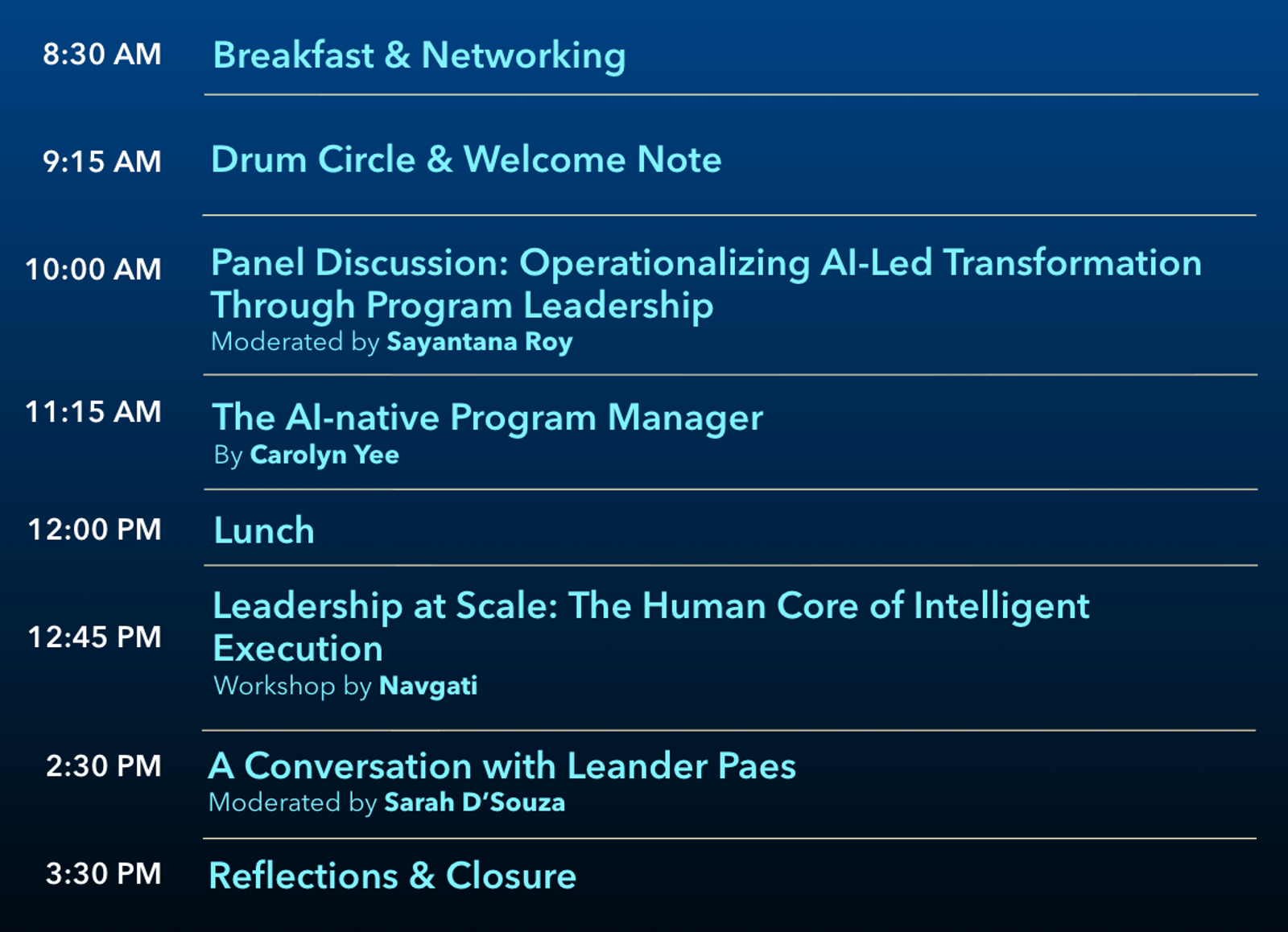 โThe day concludes with a reflective conversation with Leander Paes, the Indian tennis legend, on orchestration, partnership, and sustaining excellence over time โ a reminder that while intelligence scales execution, leadership is what turns scale into impact.