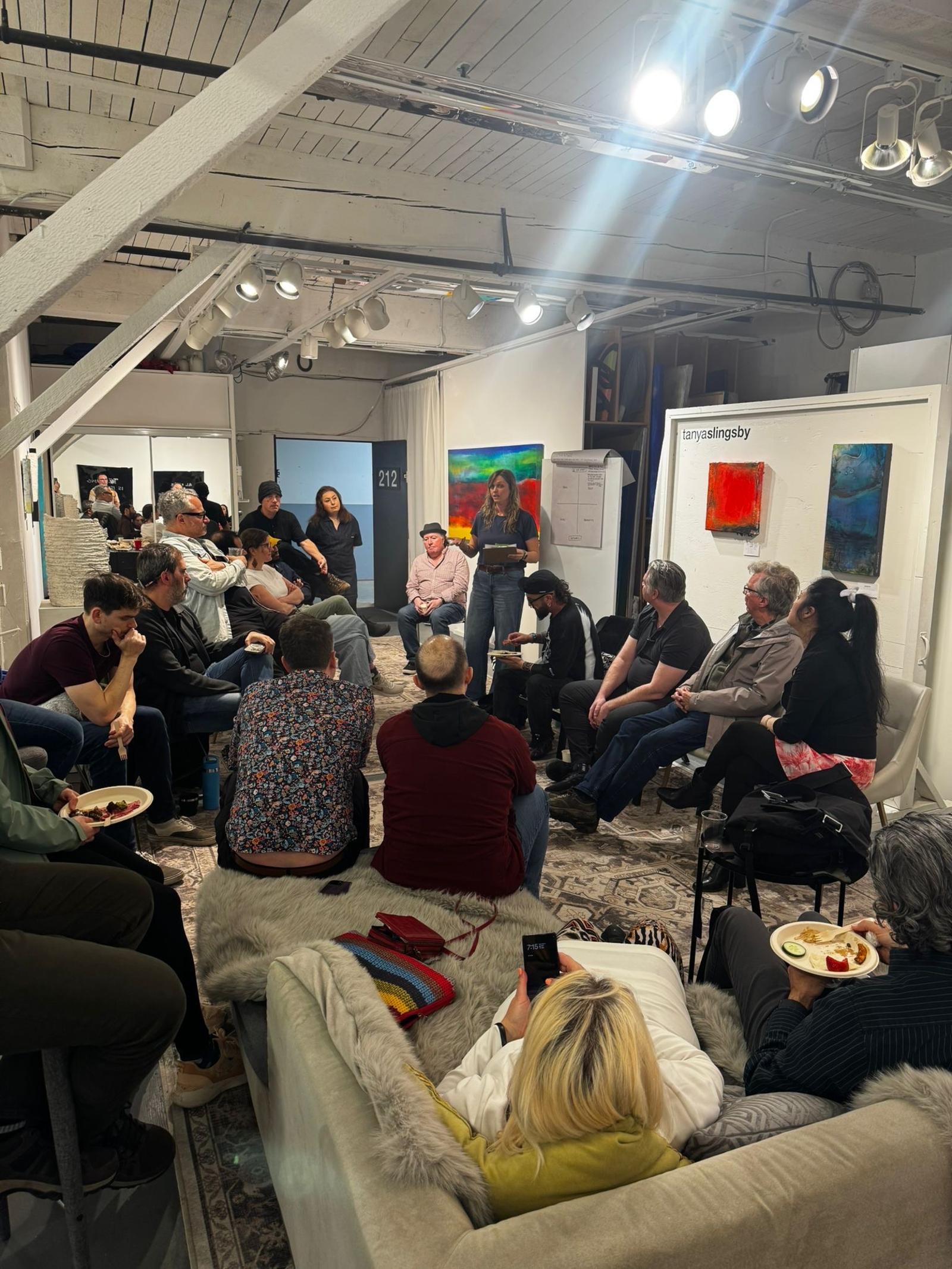 The venue shapes the conversation: We're in Tanya Slingsby's art studio. The work on the walls is human-made. The questions we're asking are about what that means now.