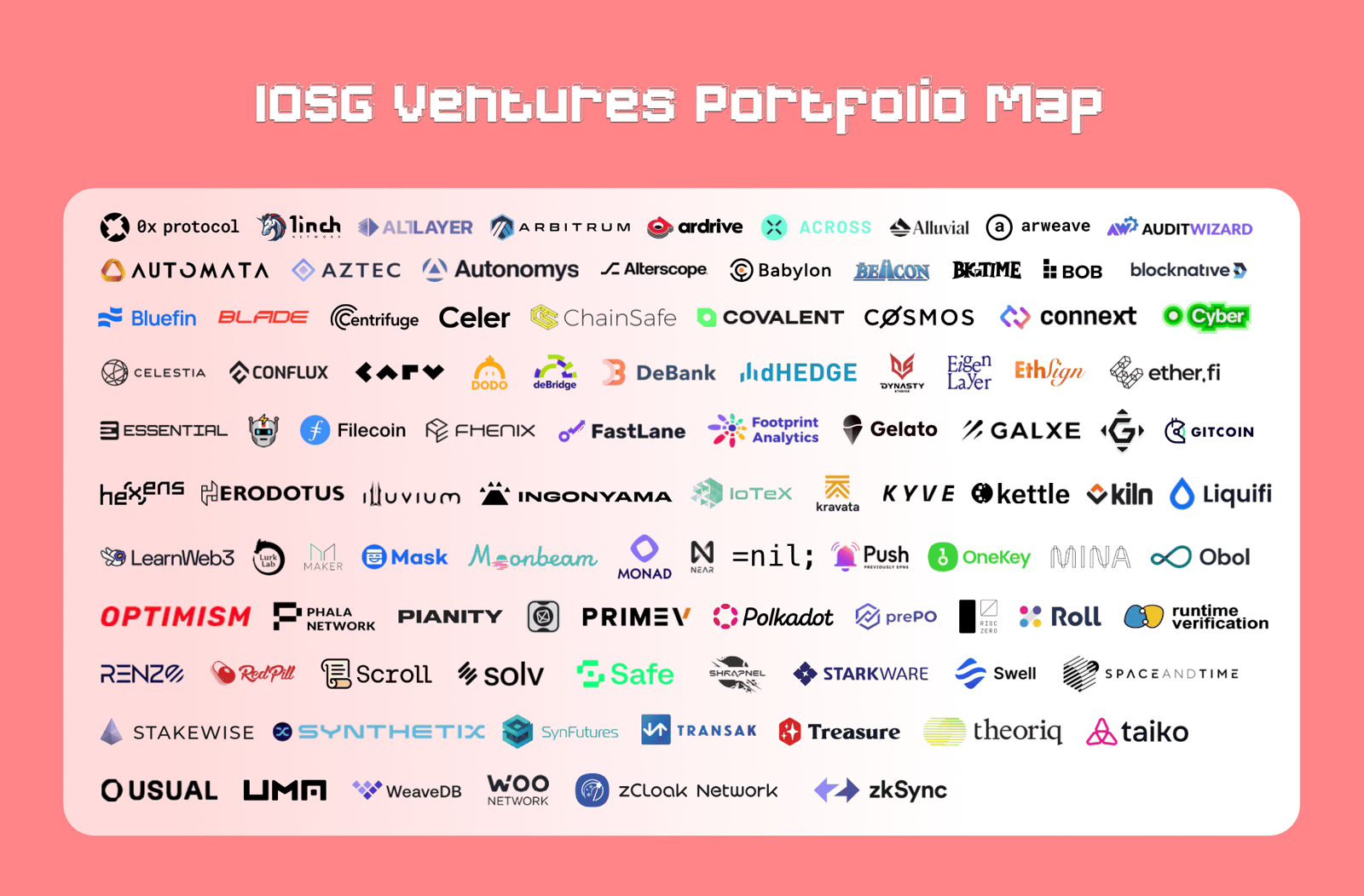 IOSG Ventures is a pioneering crypto fund founded in 2017 that invests in the future of Web3. As a thesis-driven firm, we assist founders in developing community-driven protocols that are primed to transform the crypto landscape. Our portfolio comprises a wide range of innovative and high-potential investments, including ZKRU (Scroll, StarkWare, Arbitrum, zkSync), Security Auditing(Runtime Verification, Hexens), MEV (Flashbots, Blocknative), DeFi/NFT-Fi (1inch, MetaMask), FOG (Big Time, Illuvium), and several industry leaders including Arweave, Cosmos, Celestia, EigenLayer, Scroll, zkSync, Nil Foundation, and Mina, etc. We are passionate about investing in crypto-native paradigms that have the potential to transform the future of the industry, whether you’re building infra, middleware, security, gaming, or social platforms.