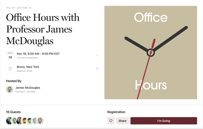 From a beautiful calendar page to a powerful CRM, Luma has all you need to connect with your people.