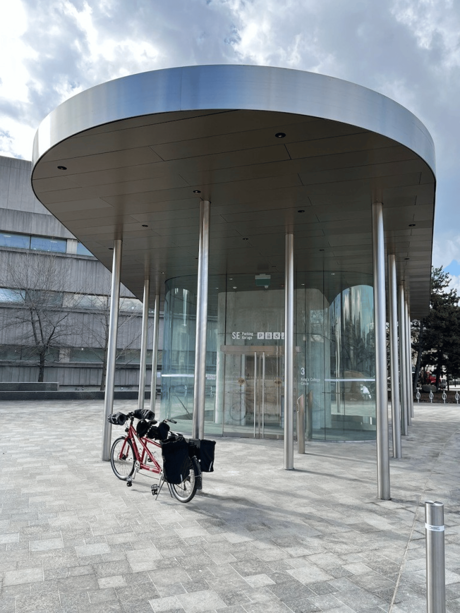 The tour will take about 45 minutes and will begin in the southeast corner of King’s College Circle, just north of the Medical Sciences Building. Please look for the glass pavilion, pictured below. Your tour guide, Scott Hendershot, will meet the group there.