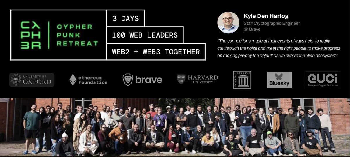 We continued with Cypherpunk Camp - 3 days of close collaboration between 100 free tech-leaders from Freedom of the Press Foundation to Bluesky [collab with Protocol Labs]