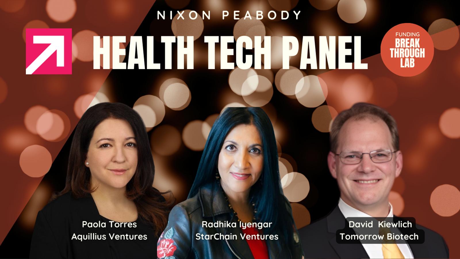 2:15-2:45pm | Investor Panel: HealthTech Insights with David Kiewlich, Paola Torre, PhD (Aquillius Ventures), Radhika Iyengar (StarChain Ventures)