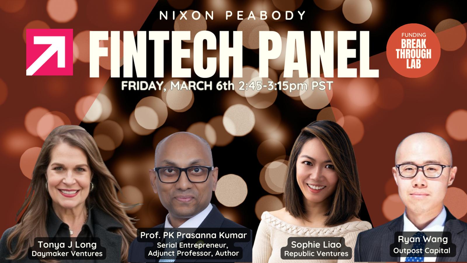 2:45-3:15pm | Investor Panel: Fintech Insights with Sophie Liao (Republic), Prof. PK Prasanna Kumar, Tonya J Long (Daymaker Ventures)