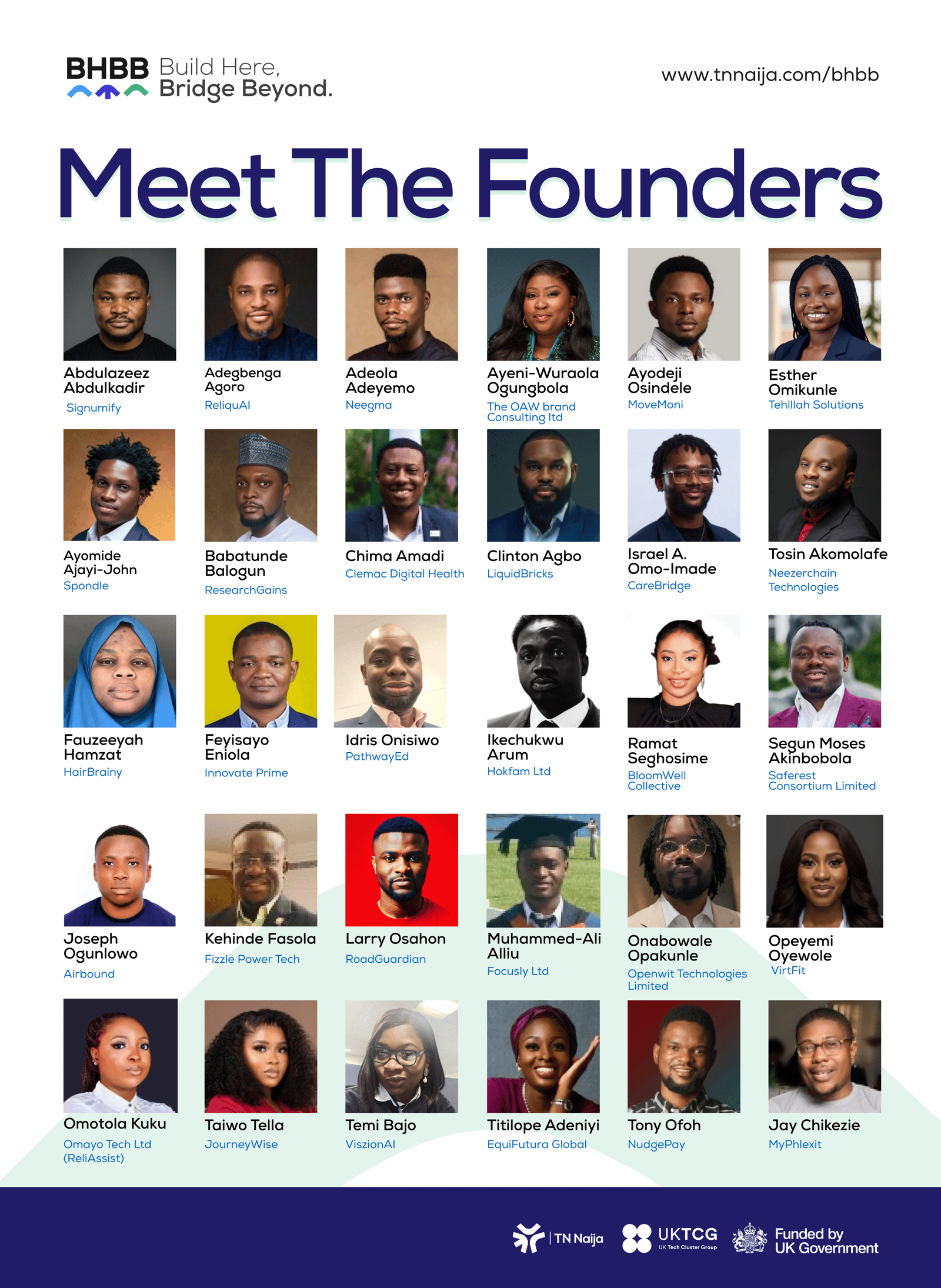 Build Here, Bridge Beyond (BHBB) is a founder support programme delivered by TN Naija, focused on helping under-represented founders build credible, scalable businesses in the UK. The programme supports founders navigating early-stage growth, access to capital, and ecosystem readiness.
