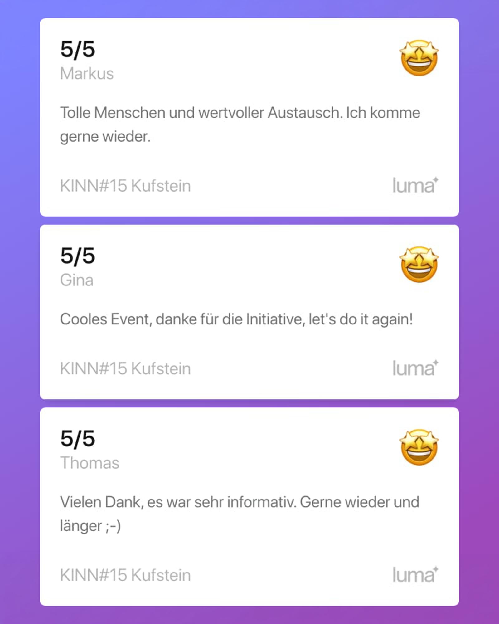 WER STEHT DAHINTER? Das KINN Chapter Kufstein wird von Désirée geleitet - selbstständige Motion Designerin, seit zwei Jahren tief in der KI-Welt unterwegs und seit KINN#10 fester Teil der Community. Ihr Fokus: KI zugänglich machen, besonders für Kreative und alle, die bei ChatGPT hängen geblieben sind. Unterstützt wird sie von Jurij (AI Sales) und Carina (Innovationsraum). Zusammen bilden sie das lokale Team, das KINN im Unterland eigenständig trägt.