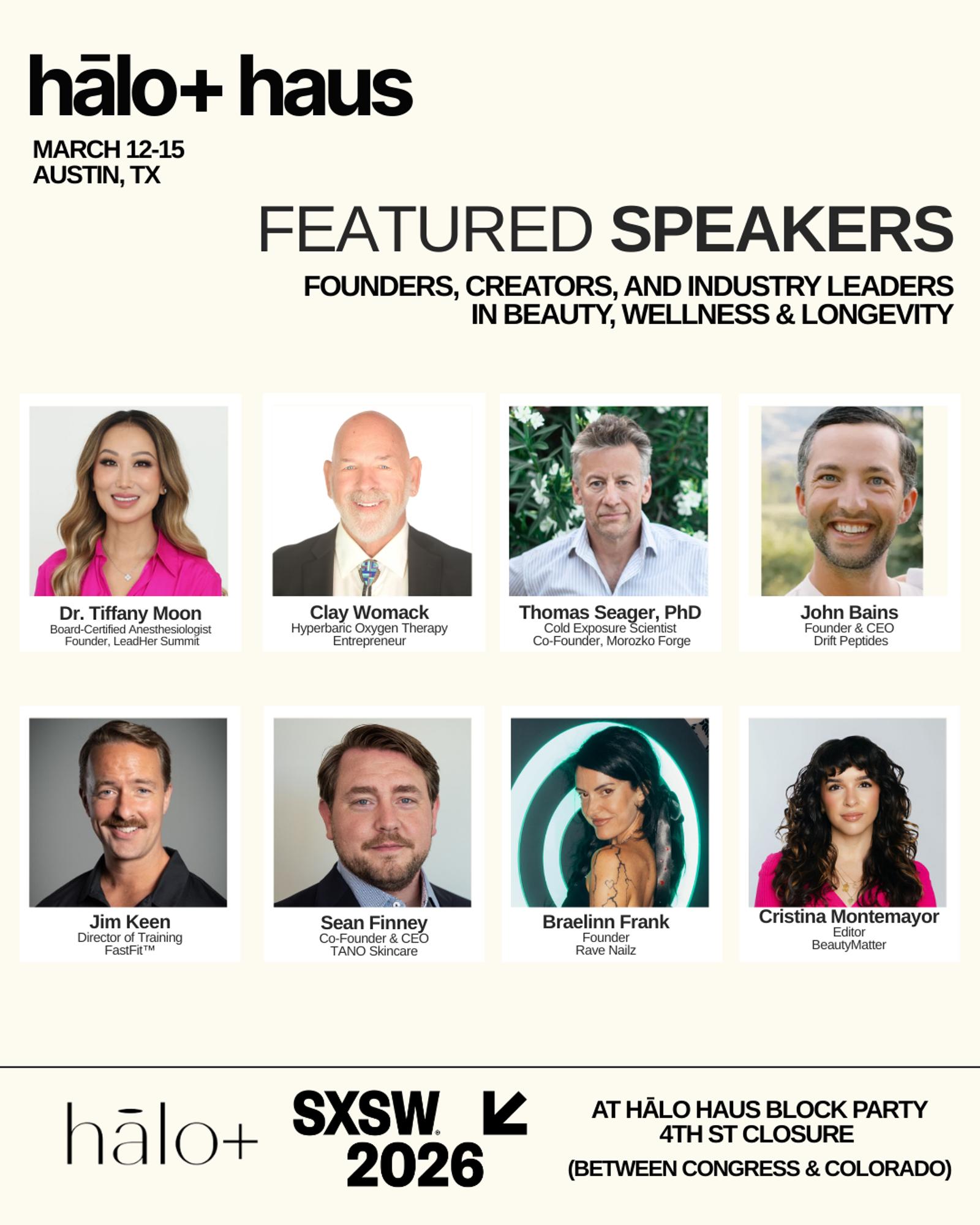 Hālo+ haus is the official beauty and wellness hub at SXSW. Built by hālo+, a beauty-led services platform, the four-day experience brings together brands, founders, and consumers through live demos, recovery lounges, and fireside conversations designed to launch, test, and scale what’s next.