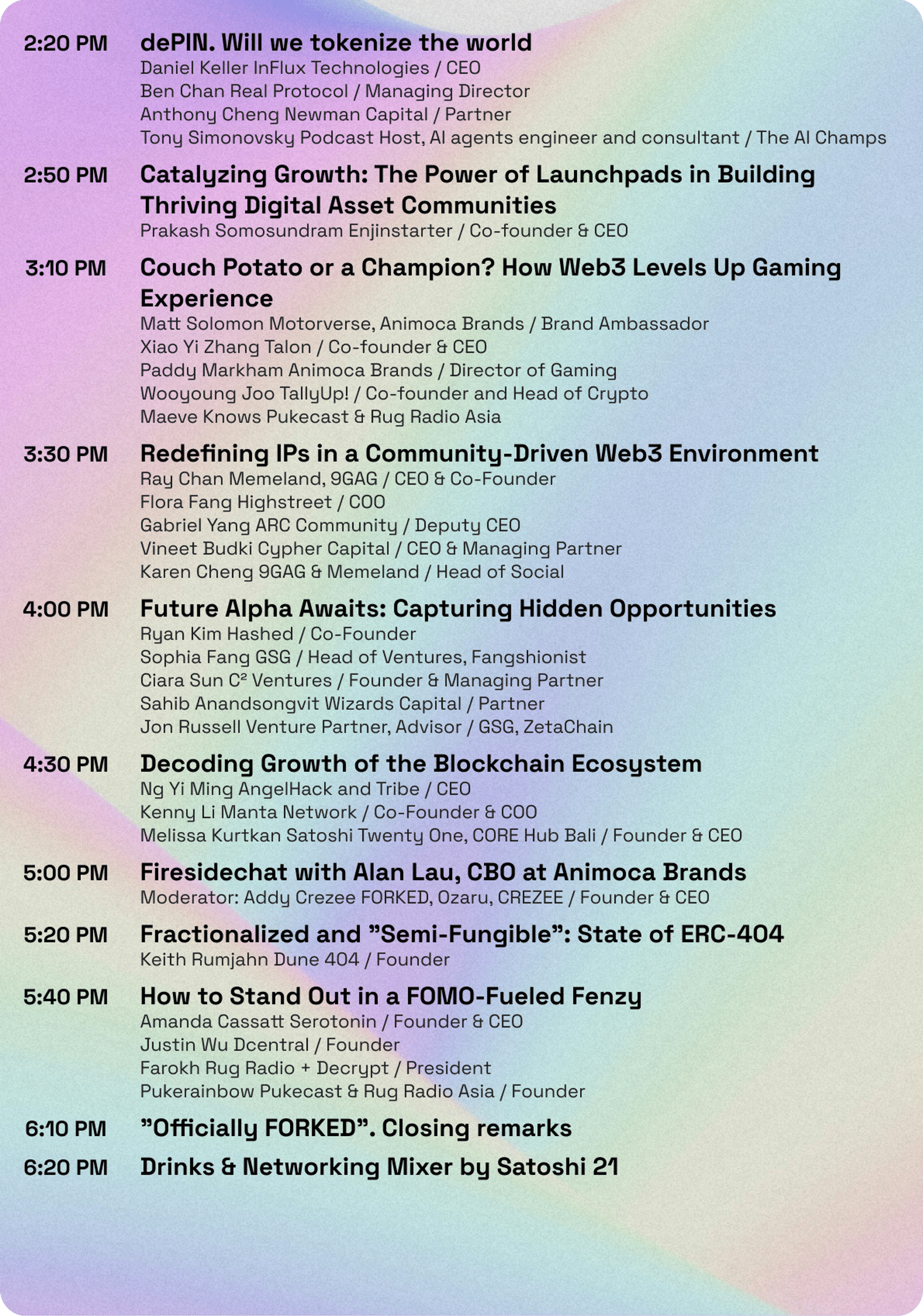 FORKED is the premier destination to meet industry leaders and gain insights from discussions on stage, and for those seeking funding and support for their Web3 products.