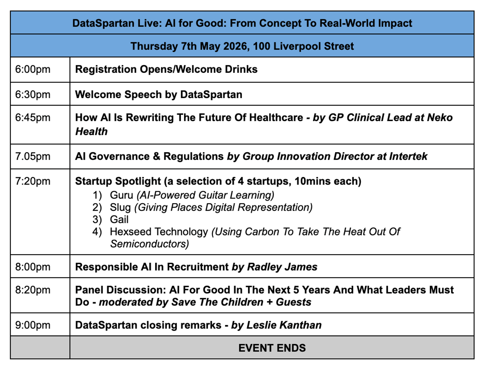 Join DataSpartan Live: AI for Good - an evening exploring how AI can be harnessed responsibly to create measurable value and positive societal change.