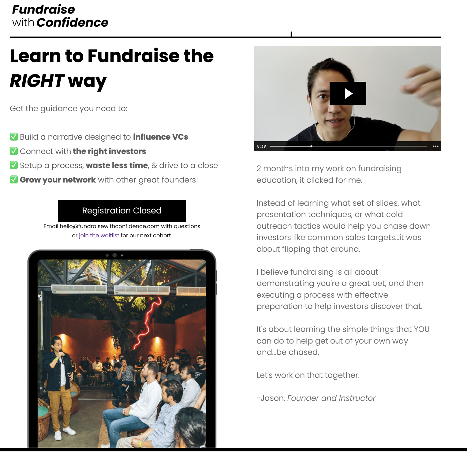 Apply to the next cohort of our fundraising accelerator! Master the same processes we've used to help founders raise over $250M from top investors.