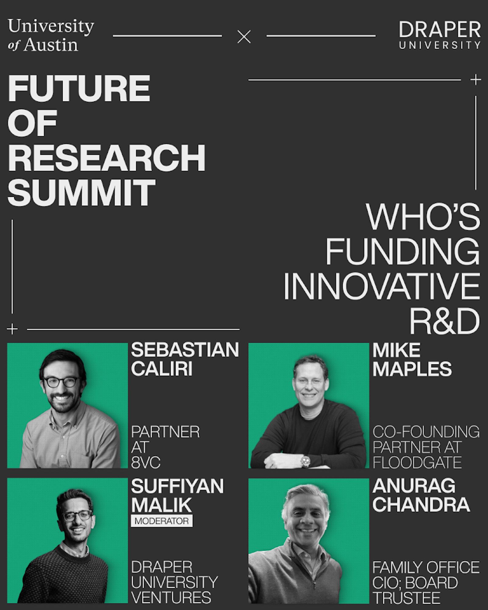 The University of Austin (UATX) and Draper University are partnering to host a summit focused on a shared passion: the Future of Research. The event will feature presentations by VCs, scientists, academics, and Tim Draper on how startup universities can create new models for applied research and commercialization to rejuvenate America’s innovation pipeline.