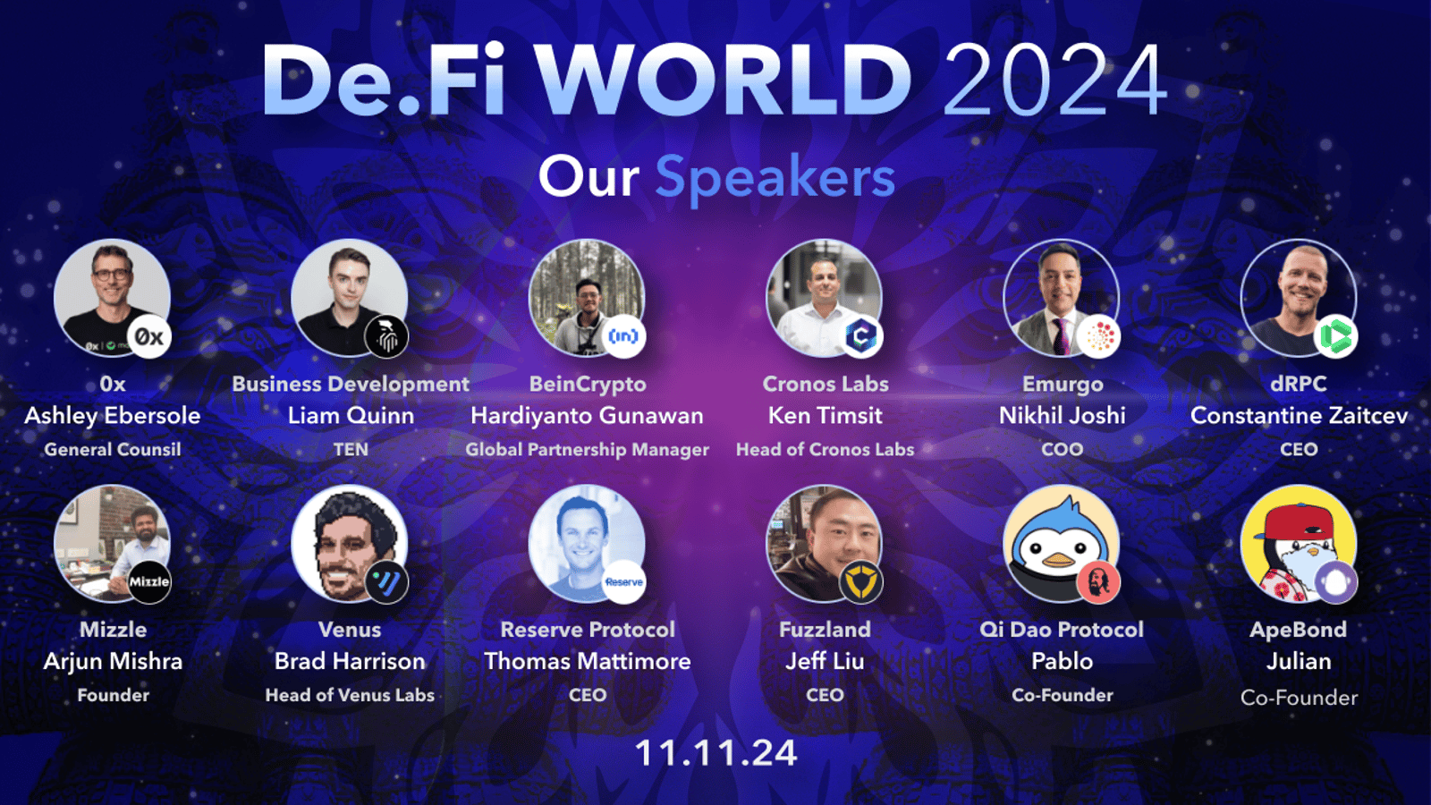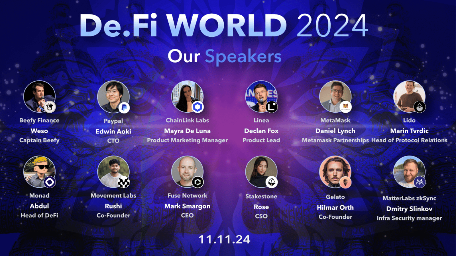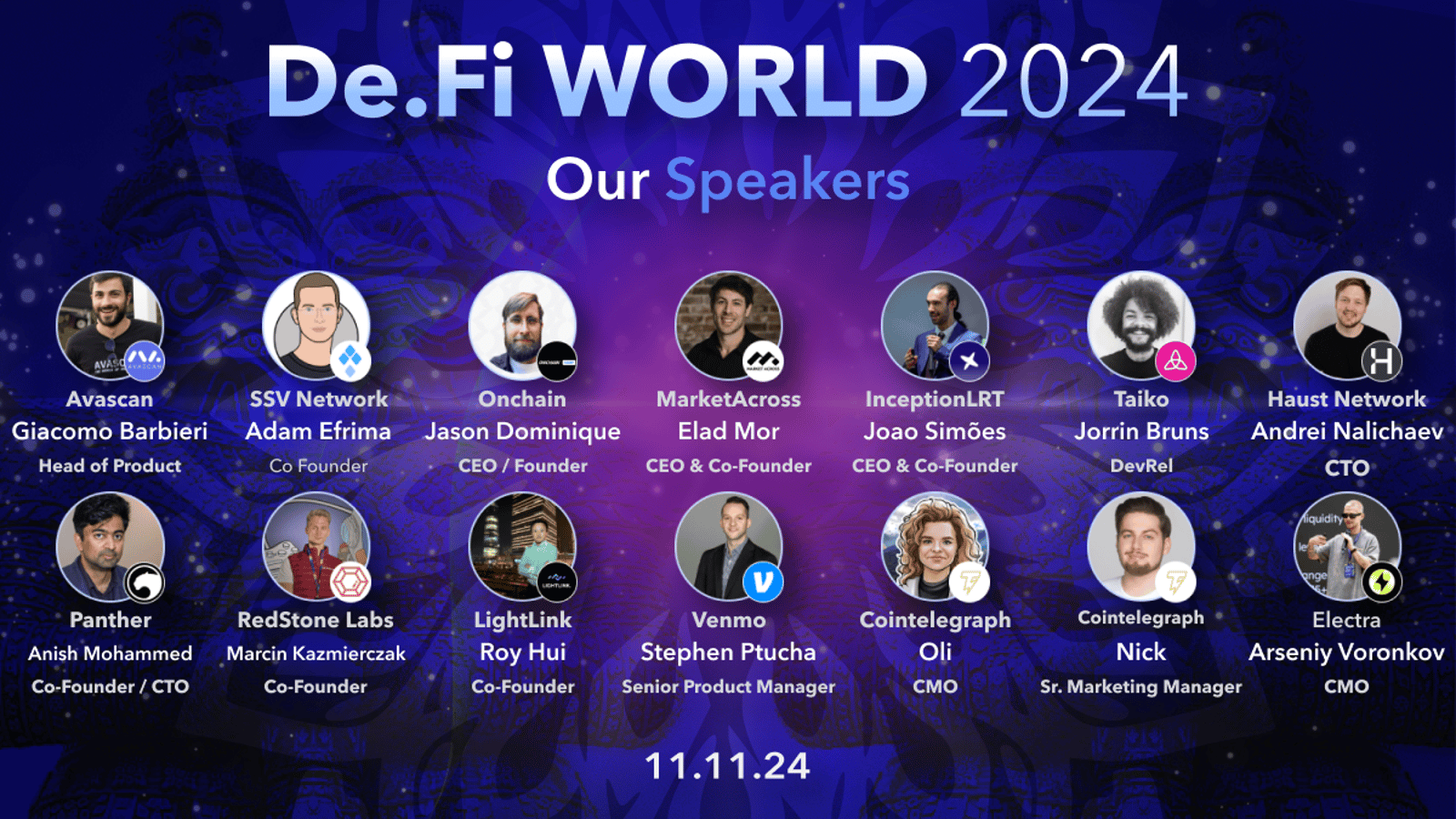 Full Agenda details found here Official Website: https://de.fi/events/de.fiworld2024